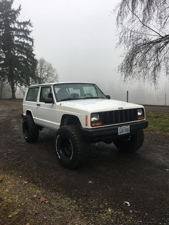 Found my old account. So I am restarting.I named this Cherokee the yeti. I posted on a ton of forums looking for a low mileage 2 door that wasn’t beat. Everyone said I will never find one, so I should stop looking. They said I would have a better chance finding a Bigfoot. The next week I had one. So I named it yeti because it was suppose to be hard to buy one, let alone see one in captivity. It is a 1994 2dr with a 2001 front clip. It had 35s and 4 inch lift. So the rear quarters where beat from tire rubbing. It was originally owned by Washington state forestry. It has 110,00 miles. The only thing I forgot to check was the radiator before I bought it. When I got it home and looked at the water it was dark brown. So I flushed it out. Then I attempted an oil change and the filter was so tight. It took me and two friends 4 hours to get it off. Here are some pics of the first day