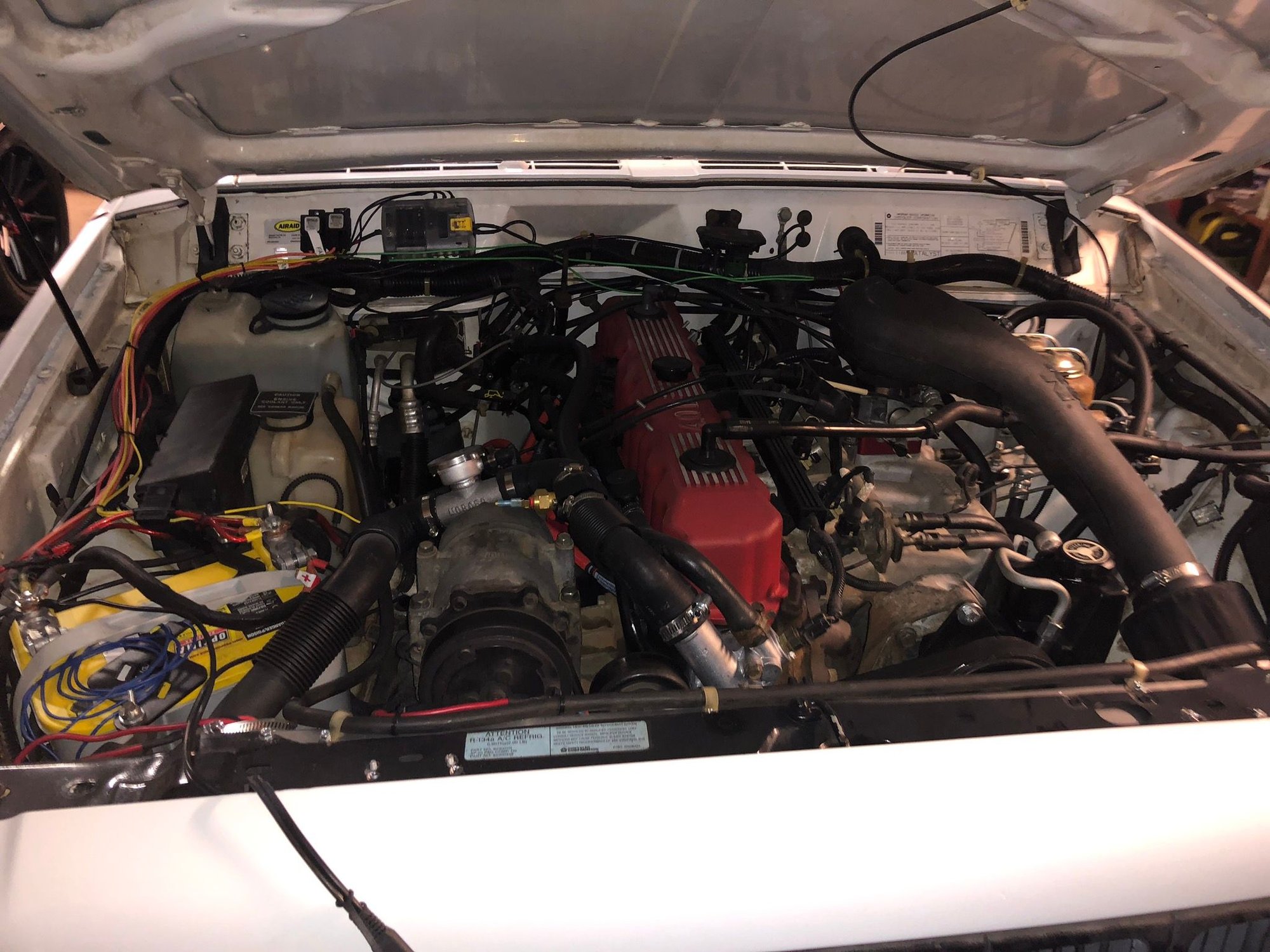 Electric triple fan conversion. I bought the first radiator from amazon, what a pile of junk, the lower oil cooler fitting that goes to the transmission was made of brass and wouldn’t tighten down right to the radiator that came with the kit. I returned it and bought a champion radiator, with triple fans,shroud and fittings. From ebay for $335.Fit good, but was a little wider then the stock or amazon radiator, so I had to mod the bolt in upper radiator panel and cut around the radiator cap. I wired one fan to the air conditioner and the other two to a dual 185 on electric fan thermostat kit I got from summit racing