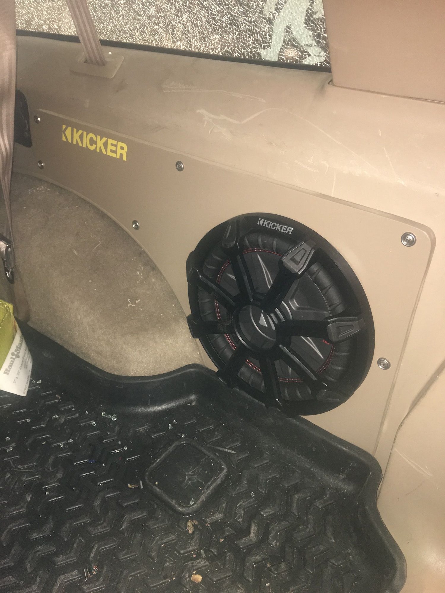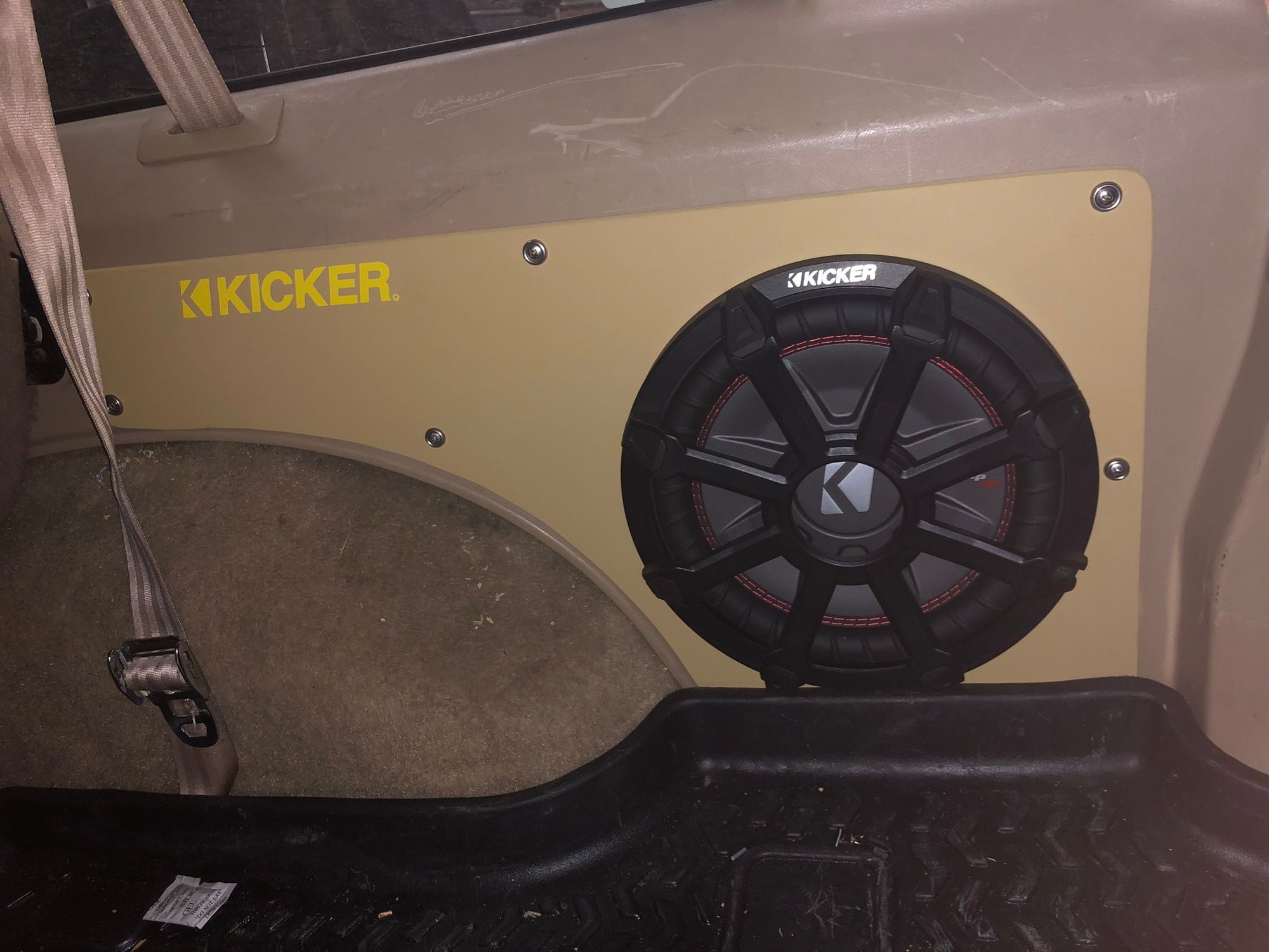 Finished the sub. Not much of a change. Don’t know if I really like the speaker grille to much. But this grille is the only one that fits the kicker sub without rubbing . At least it’s protected a little bit. The tan paint is too light. I haven’t found the right color yet. I tried 5 different stores to find a darker tan. But no luck. Does anyone have an idea where I can get the right interior color tan in a spray can