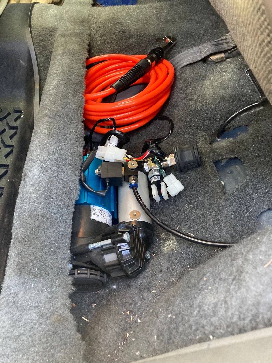 Time to get the locker all hooked up! I’m stoked for this one. I tried to put it under the hood but all the spots I looked at just didn’t work out. We ended up mounting it under the rear seat in the driver side. I got the rear Ox locker hooked up and running flawlessly. I also picked up the ARB air hose so I can air down and have onboard air. Here is where I mounted the compressor and the locker switch. I also upgraded to a aluminum champion radiator. Hopefully this will help with the overheating issues I’ve been fighting.
