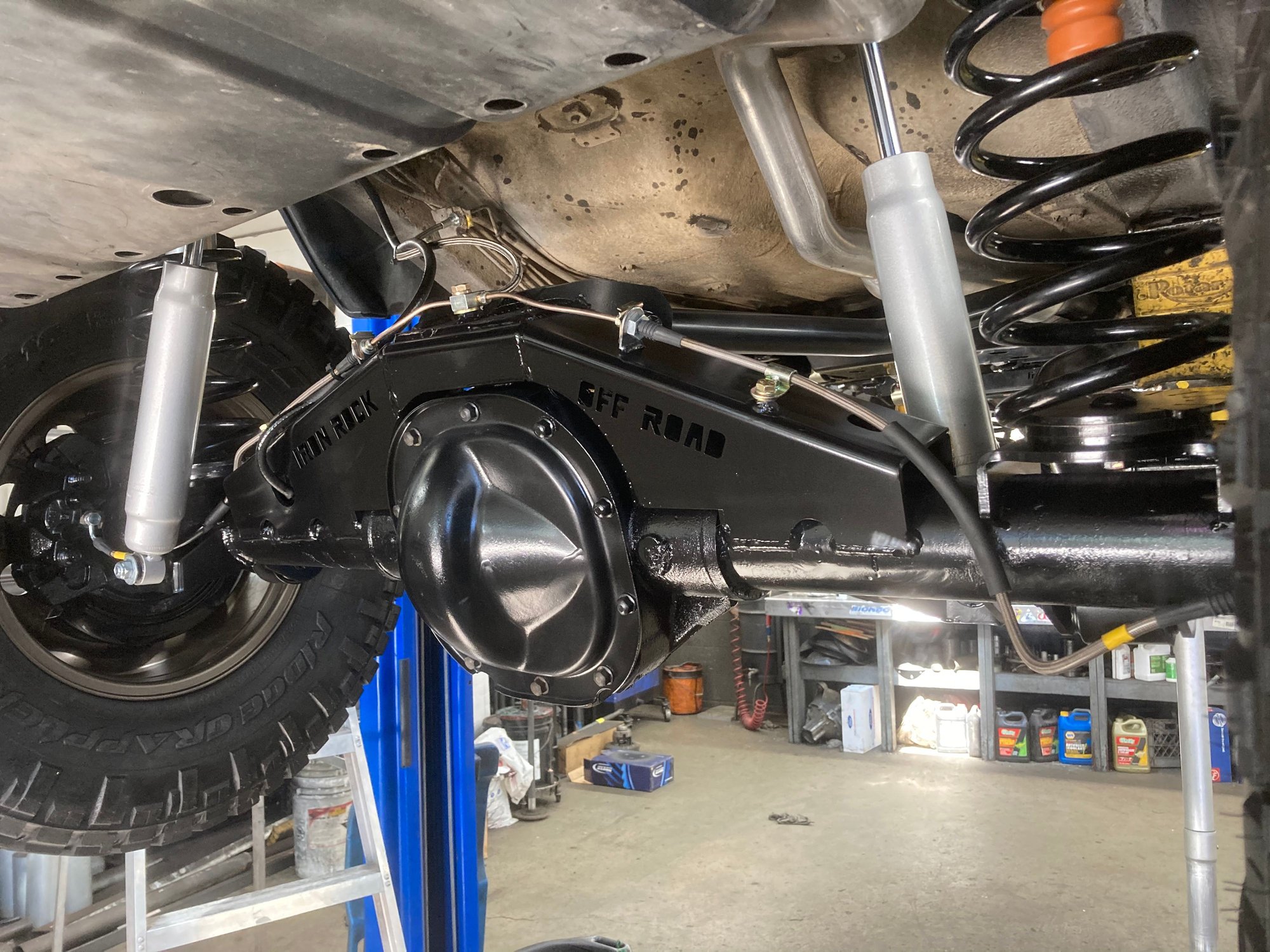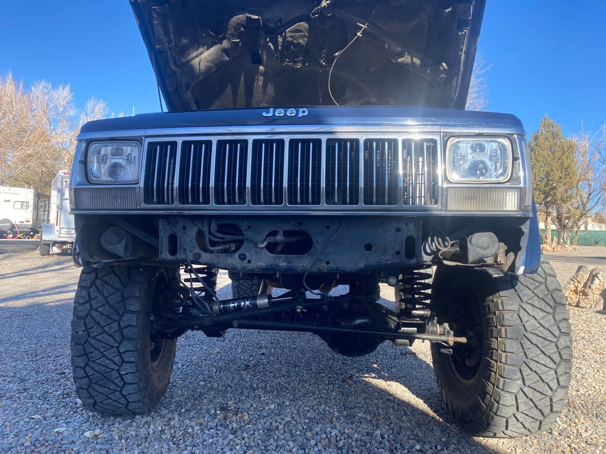 The bump steer was pretty bad with the old stabilizer but now it doesn’t “dart” near as bad. It feels nice and tight! Old bumper looked pretty good but I need more protection up front. Bumper gone now I have to make the cut. Passenger side tie in brackets. Driver side The bumper is from JCR.