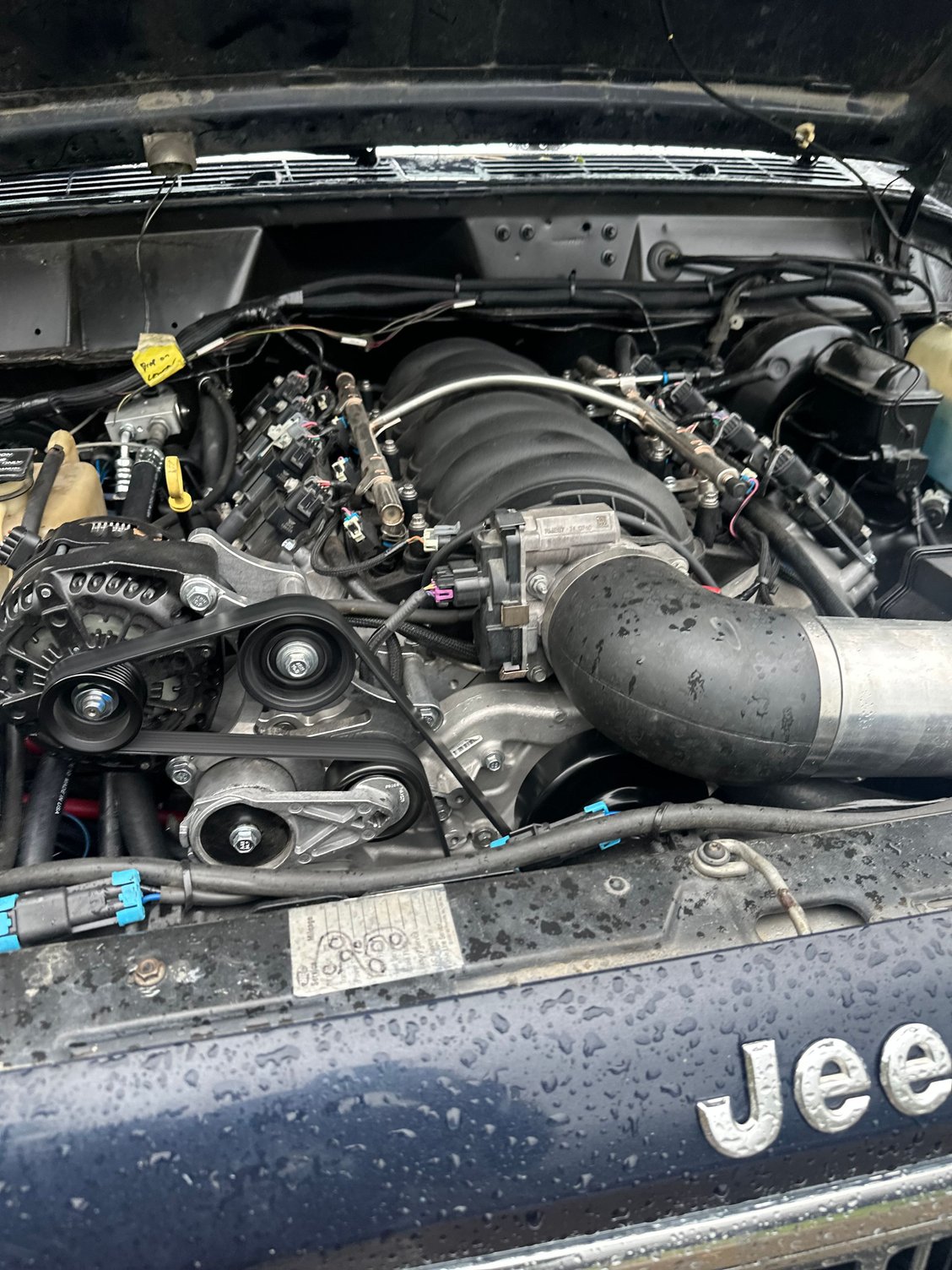 I finally picked up the jeep from Idaho where we were building it at my fathers shop. Finally here in Colorado Springs all cleaned up and ready to rip. The motor runs strong and the shifts are solid. We had a big issue with the belt blowing and jumping off the pulleys. We finally moved away from a traditional tension pulley and found a solid mount tensioner that is working great. This thing RIPS. Today was the first oil change on the new motor and I got it all cleaned up.