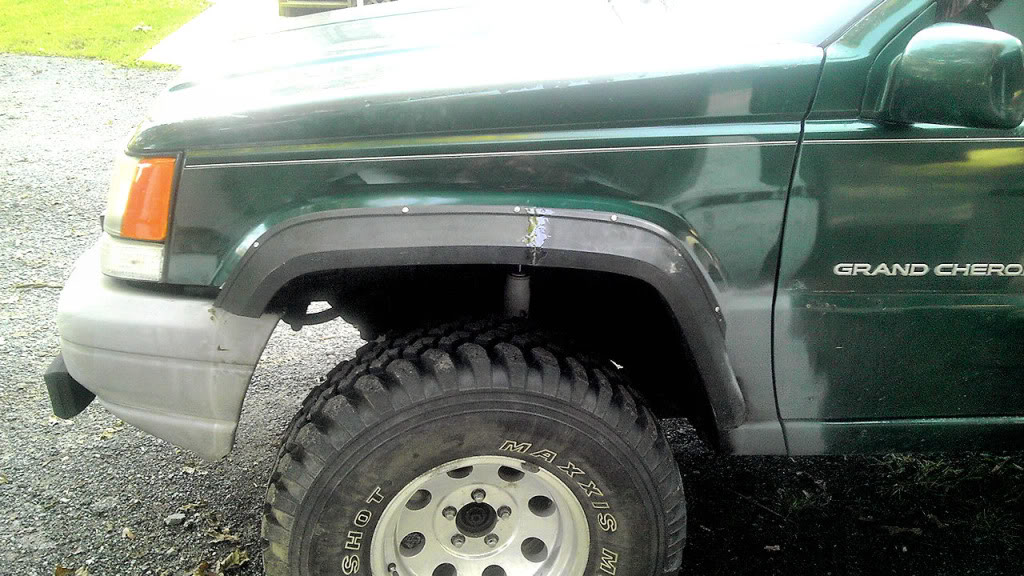 http://i869.photobucket.com/albums/a...IMAG0078-1.jpg http://i869.photobucket.com/albums/a...e/IMAG0085.jpg XJ flares on a ZJ. Not spending $500 for something that is going to get ripped off on the trail. Total cost $60. Used 2 front flares and 5 rear flares. Cut everything to follow the ZJ lines as close as possible on the rear. Cut and joined to follow lines on the front. Used a heat gun to shape to ZJ lines. Still have to sand epoxy and paint http://i869.photobucket.com/albums/a...e/IMAG0107.jpg http://i869.photobucket.com/albums/a...e/IMAG0150.jpg http://i869.photobucket.com/albums/a...e/IMAG0151.jpg Will be building custom front winch bumper and custom rear bumper w/a storage compartment. Will post pics when done Mike |