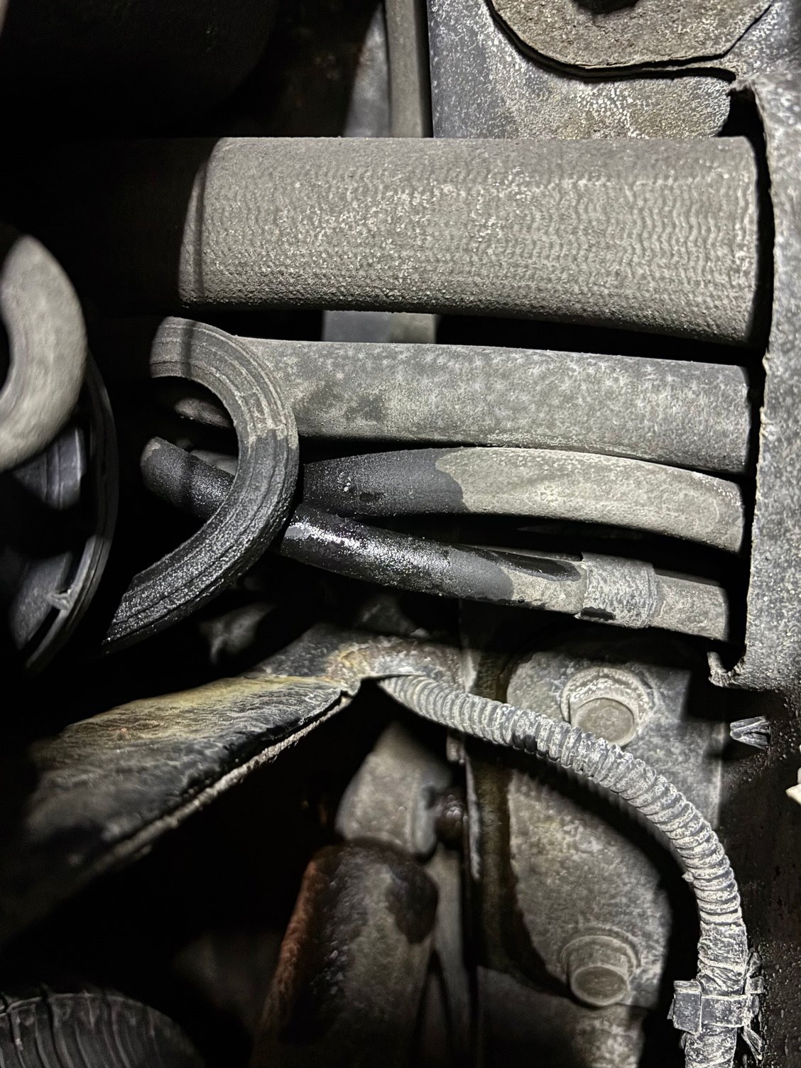 Hey folks, new to the forum. Recently purchased a 2002 Laredo with the 4.0L and 190K, and I'm going through the car working on reliability. While poking around, I noticed these wet hoses at the driver side rear wheel well looking up. I assume these are EVAP related?