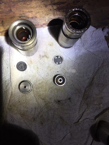 I see in the FSM the lifter bleed down test on the bench, it basically says the lifter total travel is .125 for those of you who are following. This would mean my 2 munched valves that were preloaded to .125 were in fact bottomed from the get go. Word to me, yo.