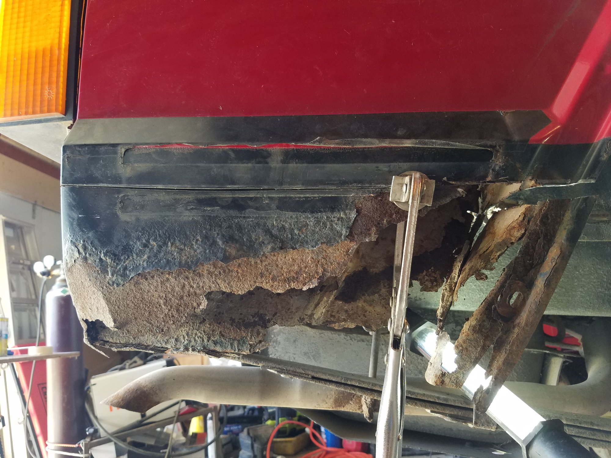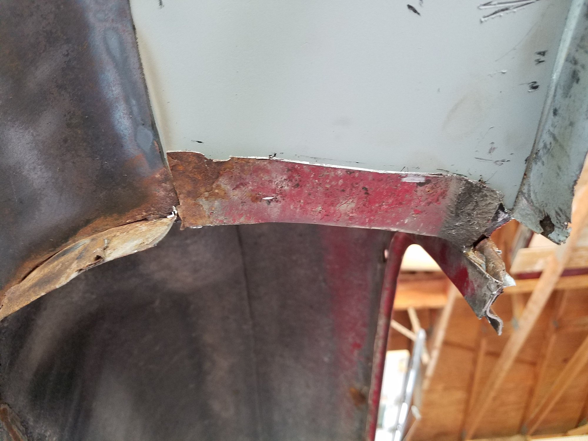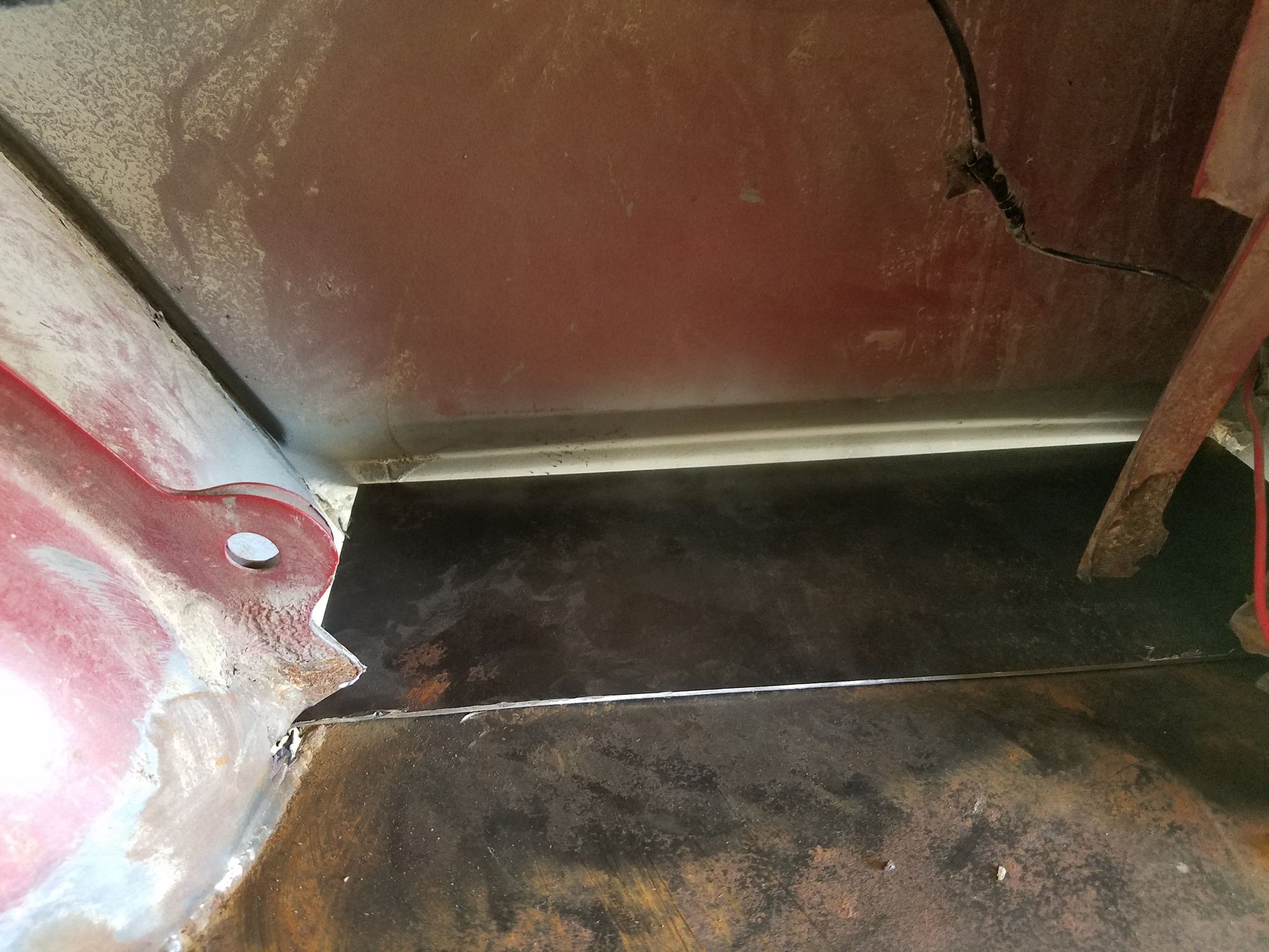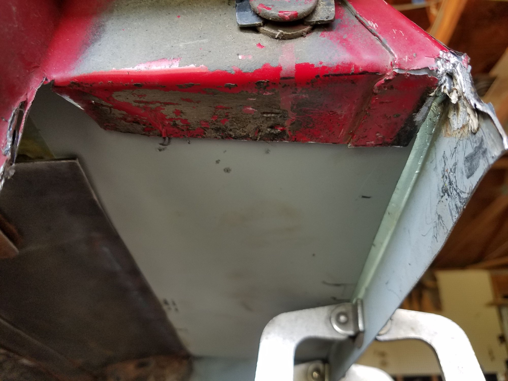 2. Fill the gaping hole you just created. I was able to weld in the patch from the inside, your situation might be different... adapt to it.