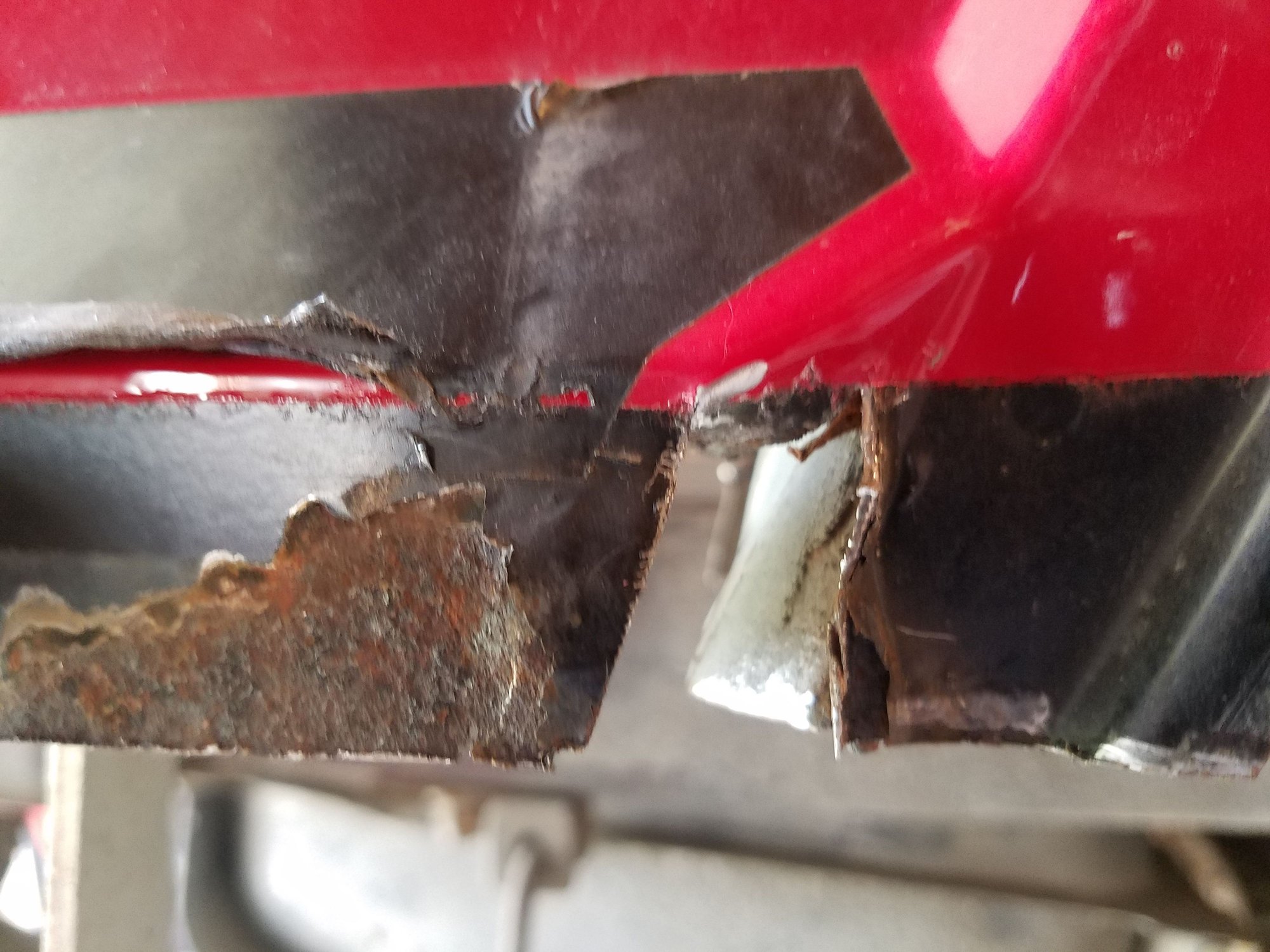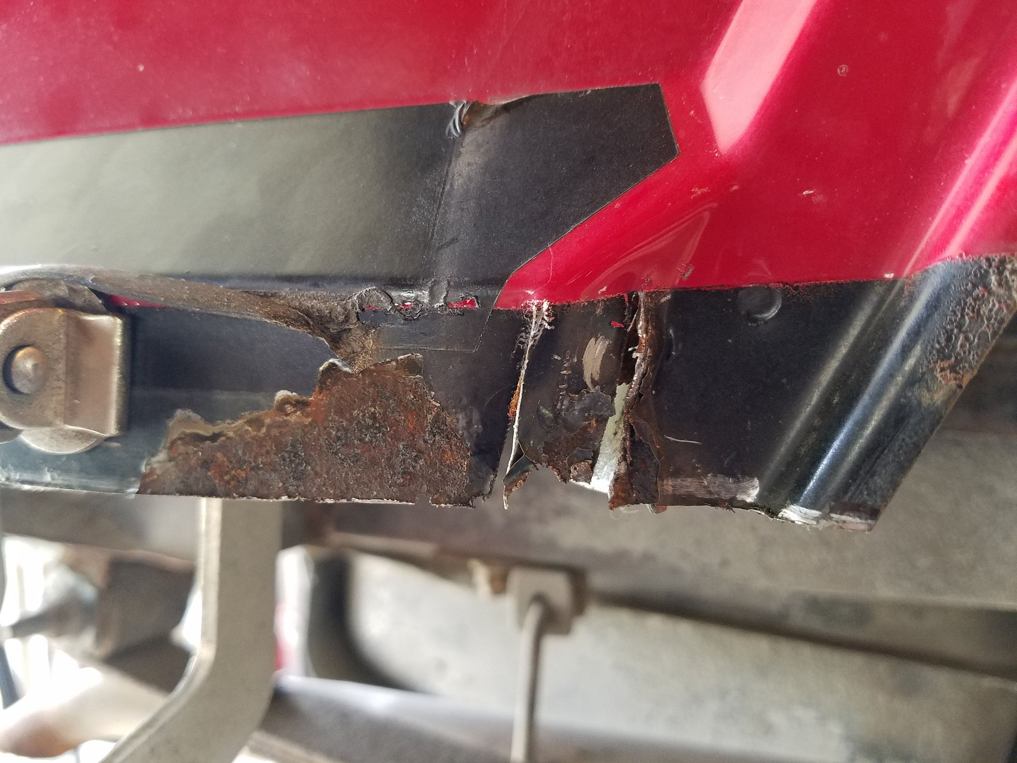 1. Cut where the rust stops, for me it was around 1 1/4" below the fold in the panel.