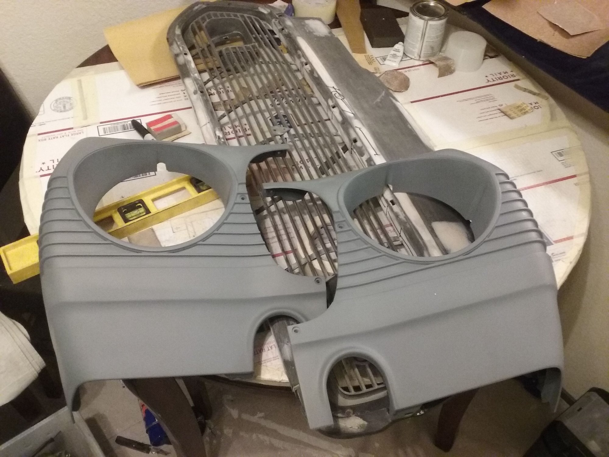 Headlight doors are almost done. Just need to clean up a little bit of paint bleed, clear and sand them. Still fighting with the grille. Can't seem to get it straight enough for black paint. At some point I'm just going to have to take what I got and go with it.