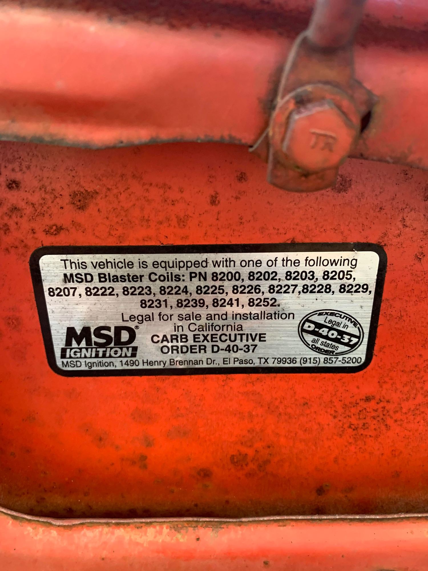 Seriously though, CA started smog requirements in 1968 with the PCV valve requirement. It got worse from thee though. But in CA, the toughest smog state, you are not required to smog it if it was manufactured before 1974. So you just made it. . As stated the MSD sticker is for an aftermarket part that just happens to be CARB compliant. Just get it running and enjoy it. So it is a 4000. Does it have the Dana 60 rear with the semi float axle? A rare bird if it does