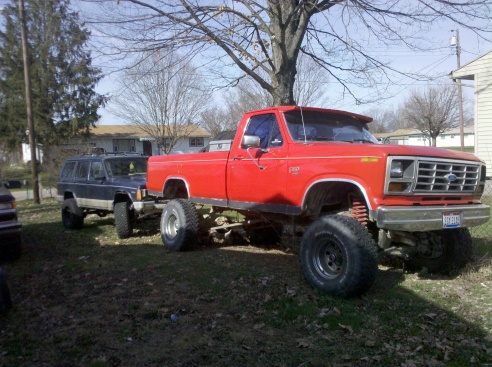 dads old pickup, 07 f350 sct programer , airaid CIA, mbrp turbo back, 35s on new truck (5th set of tires in 2 years). moms 05 mustang v6 pony edition, stock with airaid CIA and flowmasters exhaust.(also had a 07 frd edge sel for her DD mustang was her play car!!)