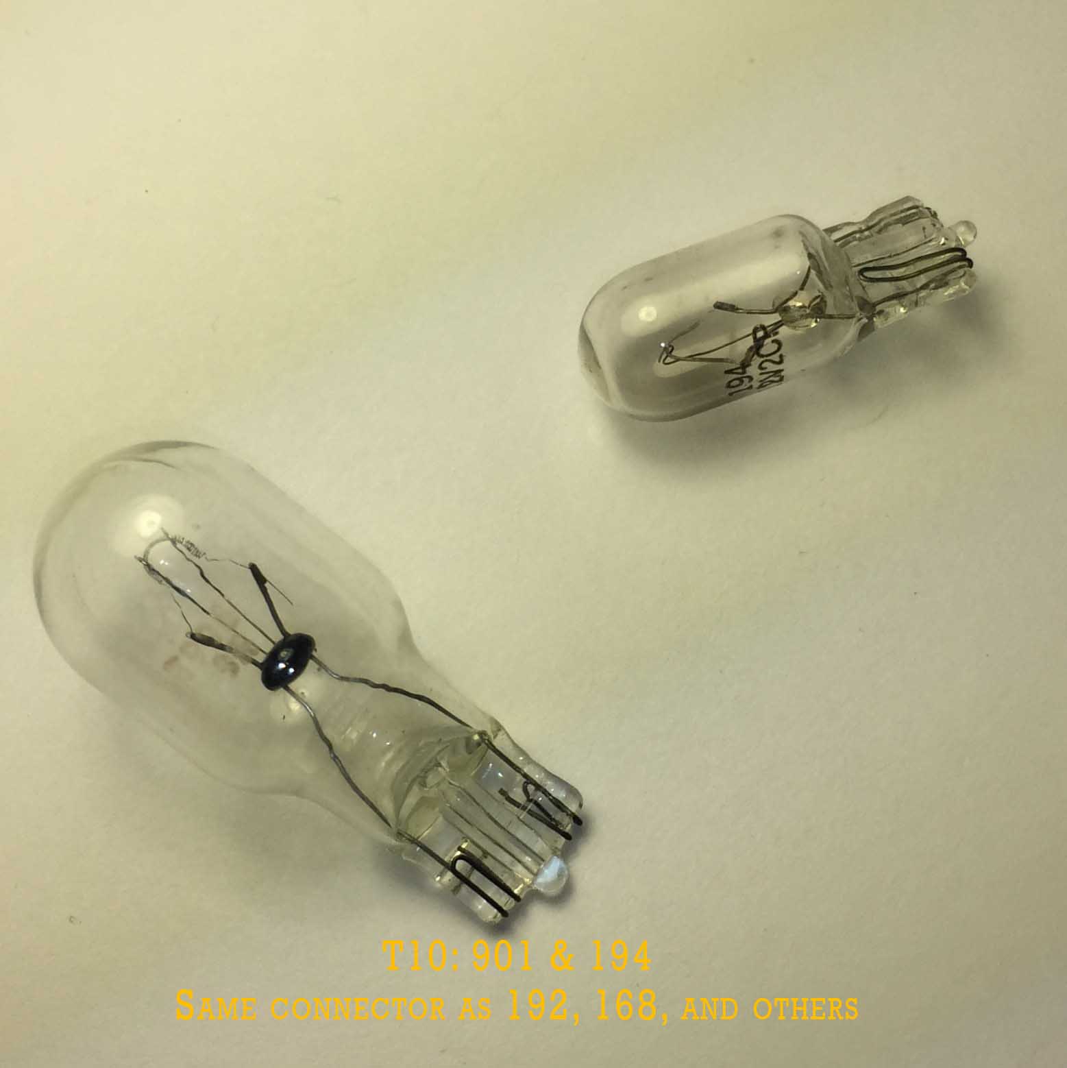 Wedge shaped small and large bulbs = T10 type; part number designates the 'bulbous' part, but are electrically interchangeable. (194, 192, 168, etc)