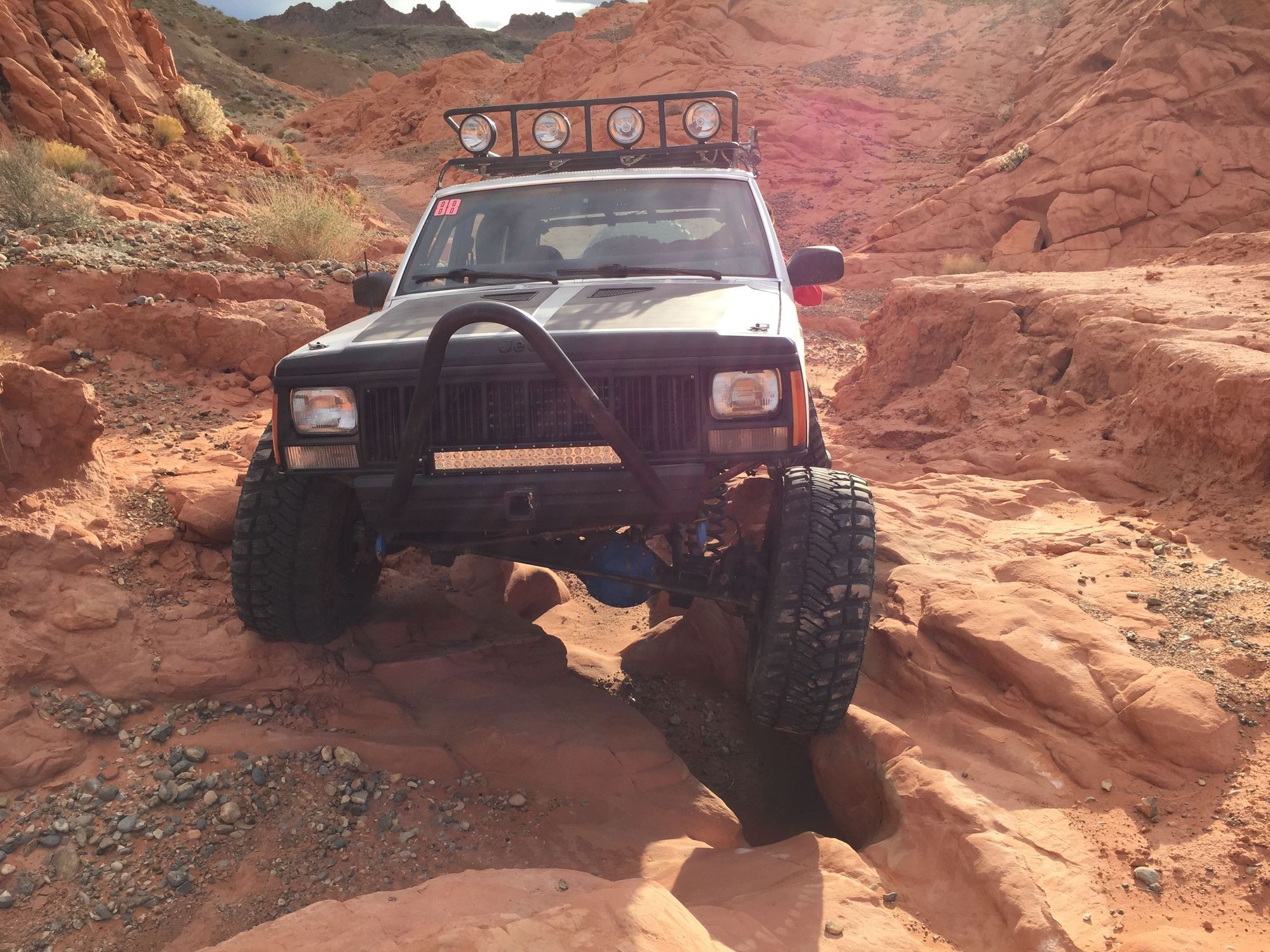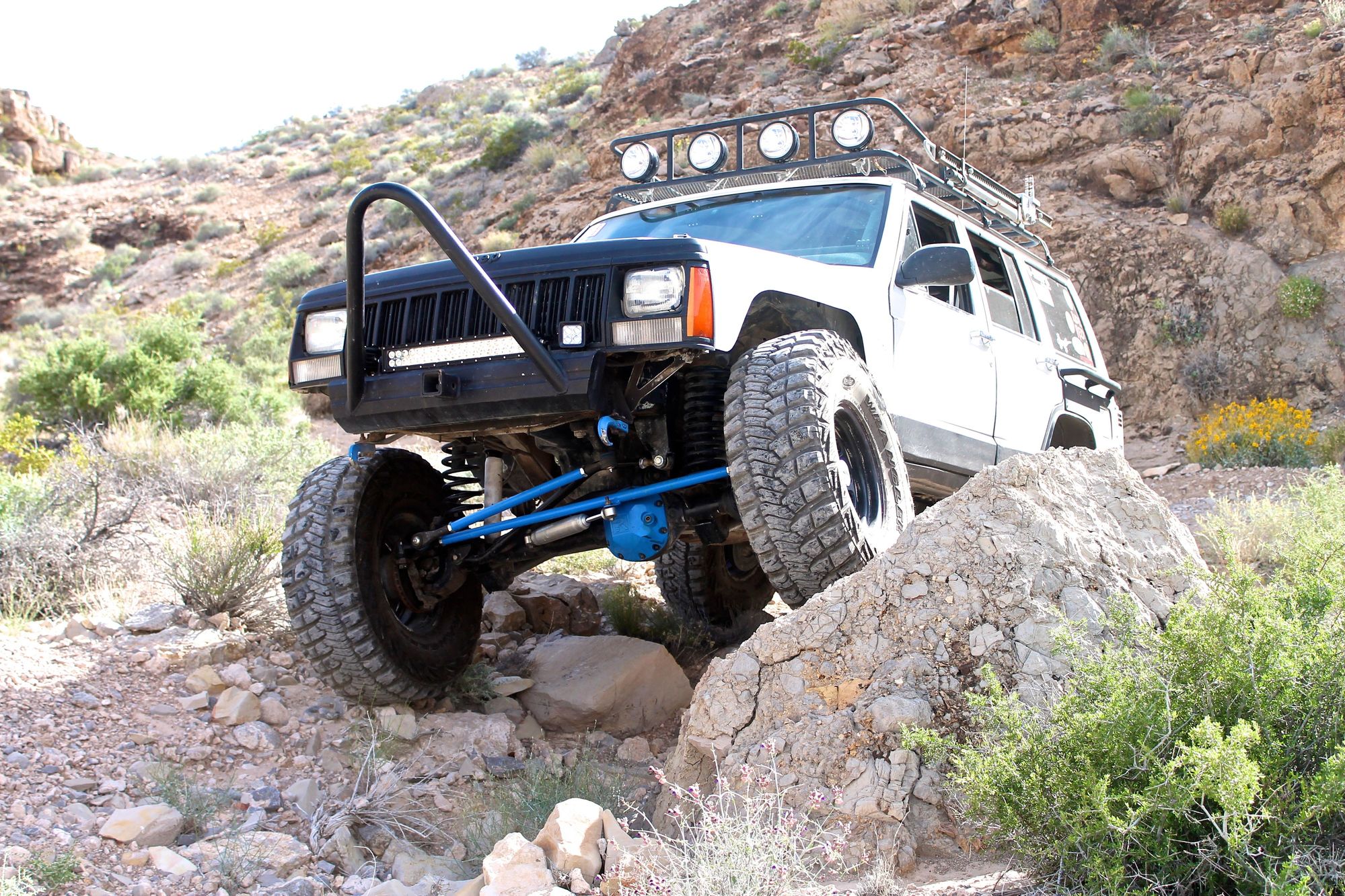 Drivetrain: 35'' Goodyear MTR's, Unique wheels Ford 8.8, 4.56 gears, Aussie Locker, Iron Rock truss, Blue torch fab diff cover Dana 30 HP, 4.56 gears, Ballistic fab truss, Iron Rock C gussets, Riddler diff cover, JKS mini skids, Iron Rock extended brake lines Np242 swapped to np231 transfercase, slip yolk eliminator, 37 tooth speedo gear Engine: Cowl cold air intake, APN header, magnaflow exhaust, 99+ intake, neon injectors, Screaming demon high performance ignition system Steering: JCR offroad OTK steering, Iron Rock Offroad double shear track bar, Factory pump with drilled output, Durango box tapped for hydro assist Suspension: Iron Rock 6.5 coils, Ranch shocks(temporary), Rough country long arms, Rear bastard pack, Shackle Relocates, extended shackles, 16'' 2.5 Foa's with remote resevoirs Interior: Rock Hard 4x4 8 point cage, Beard racing bucket seats, G-Force 5 point harness's, NRG steering wheel with quick release hub, Prime 4x4 Switch panel, On board air system Exterior: Or-Fab rear quarter panel armor, Custom rear swing away, Custom front stinger bumper, Custom roof rack with hi lift mount, 4 KC daylighters, GGlighting 20'' light bar, 6'' light bar, and 2 led pods, 8 rock lights, Frame stiffenershttps://cimg4.ibsrv.net/gimg/www.che...f63427820f.jpg https://cimg9.ibsrv.net/gimg/www.che...961167868f.jpg https://cimg1.ibsrv.net/gimg/www.che...ffe9868b36.png https://cimg2.ibsrv.net/gimg/www.che...22faa723eb.jpg https://cimg4.ibsrv.net/gimg/www.che...1b10497775.jpg https://cimg5.ibsrv.net/gimg/www.che...ebed006a06.jpg |