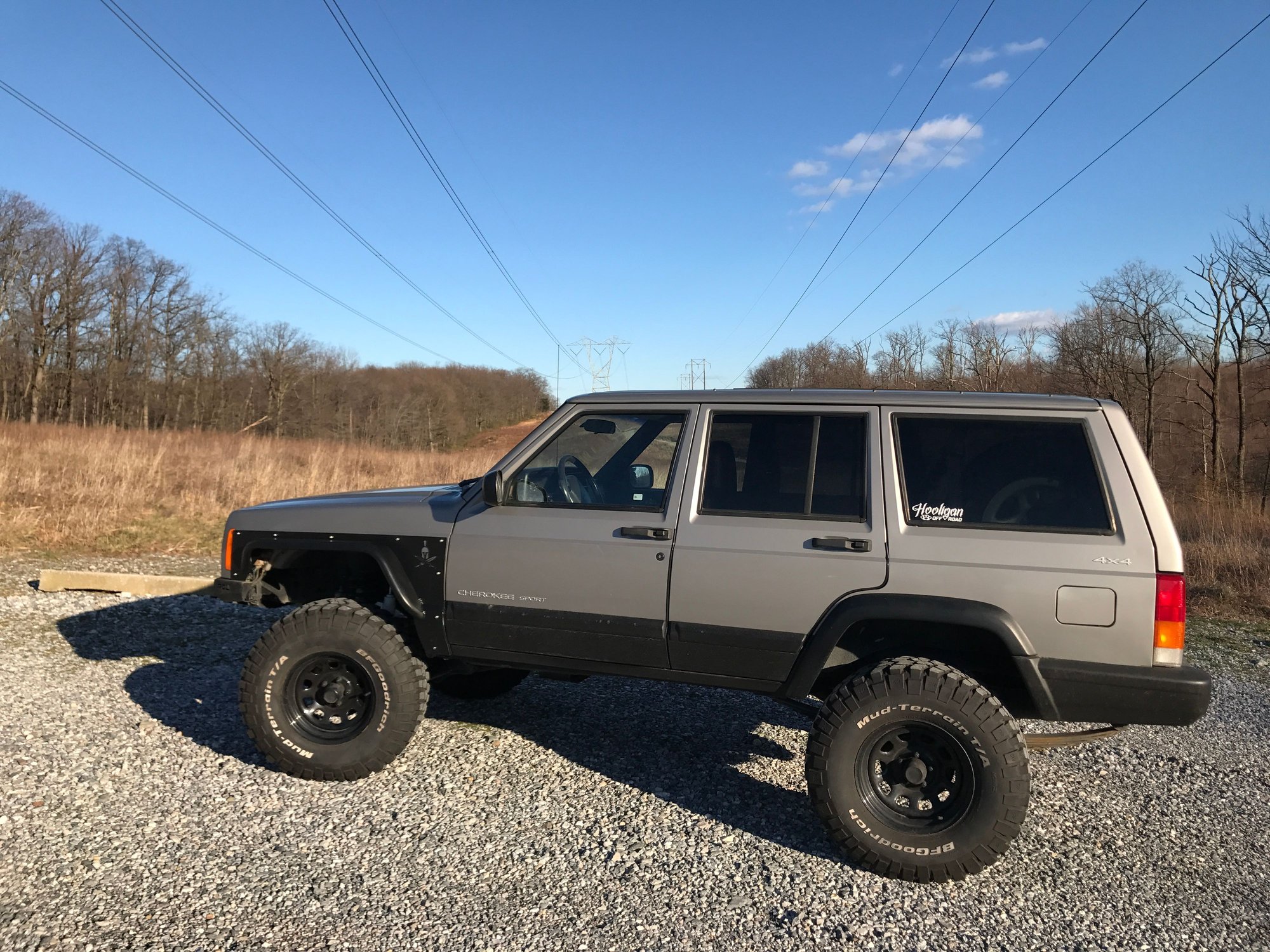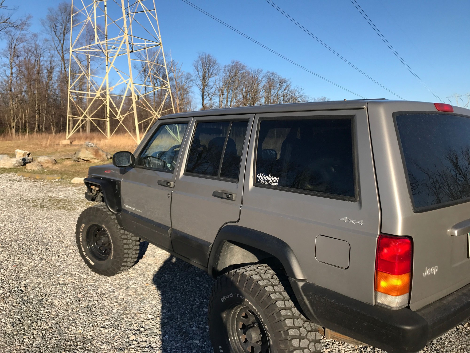 Frankenstein 4.5" lift with RE Coils and leafs with RC long arms. IRO TB, Serious 1-ton steering, DBO Mojave front bumper with eBay HIDs, Warn rear tire carrier bumper, spectre cowl intake, Bilstein 5100s, WJ leather seat upgrade, custom audio system with infinity subs in homebrew cubby box. Etc.....