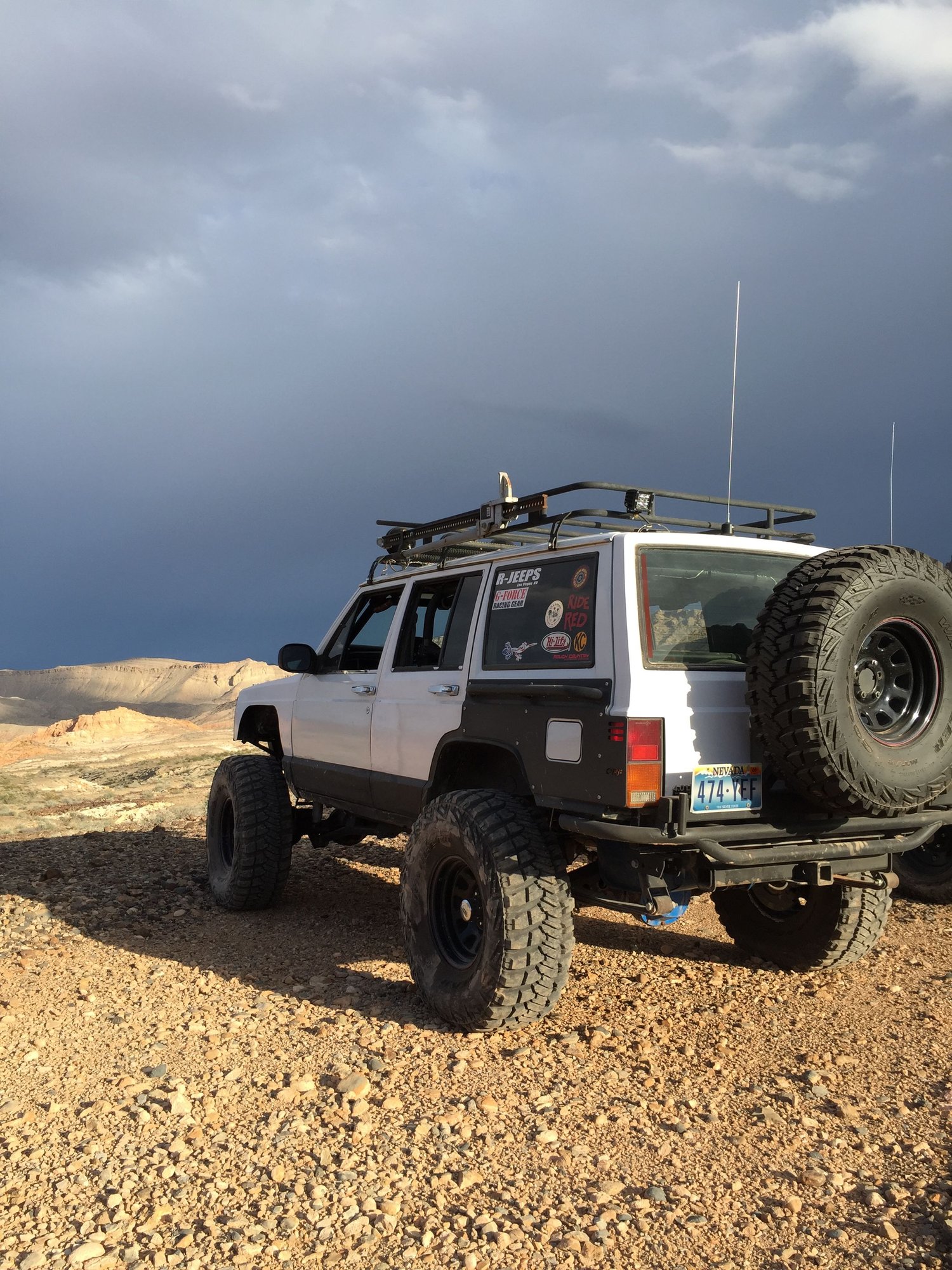 Exterior: Or-Fab rear quarter panel armor, Custom rear swing away, Custom front stinger bumper, Custom roof rack with hi lift mount, 4 KC daylighters, GGlighting 20'' light bar, 6'' light bar, and 2 led pods, 8 rock lights, Frame stiffeners