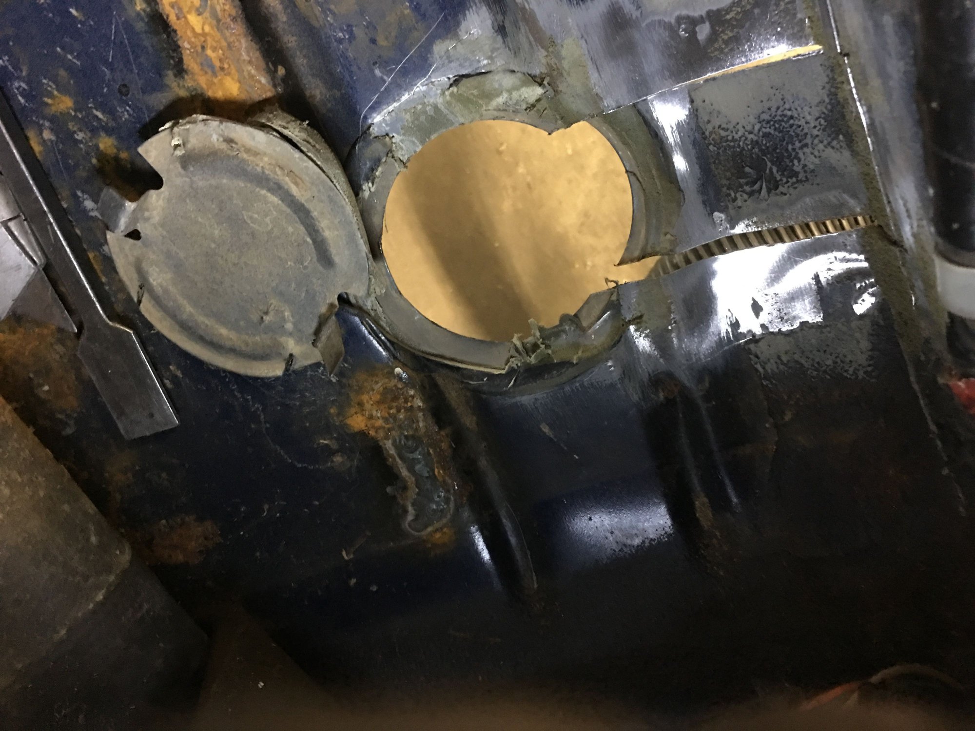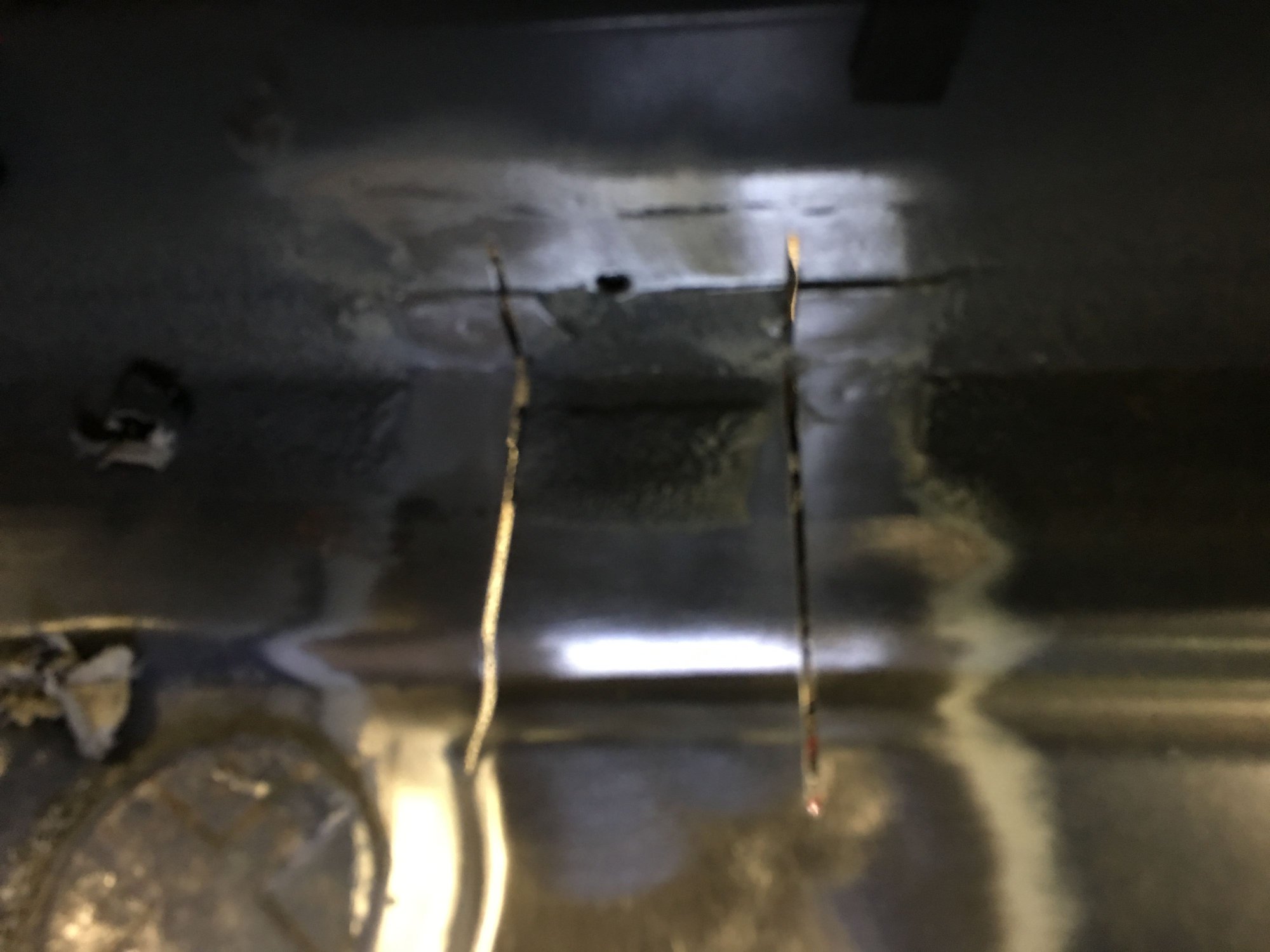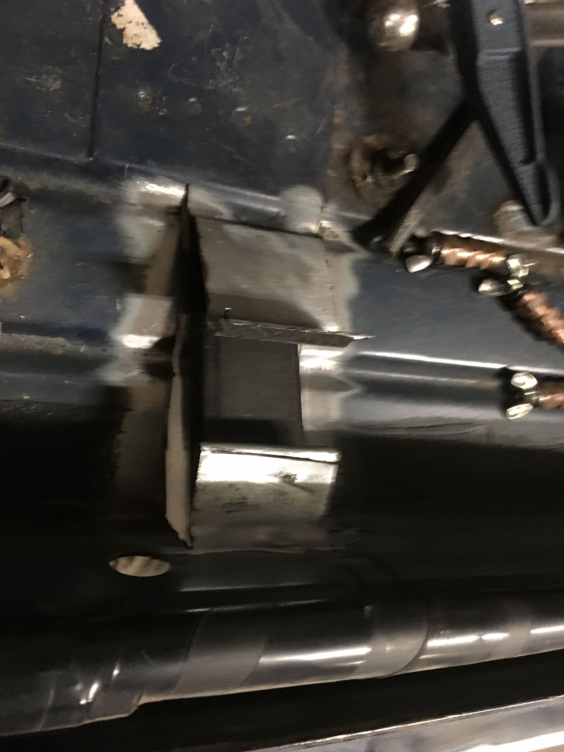 Got the first tie in tacked on. Measured from the rear tie in 48 , the length of my plate for the boat side, forward to locate the forward tie in. Marked and cut like the rear but ran square into the factory knock out hole in the floor! Glued in with seam sealer 🙄. Have to figure that out when I seal up the floor.