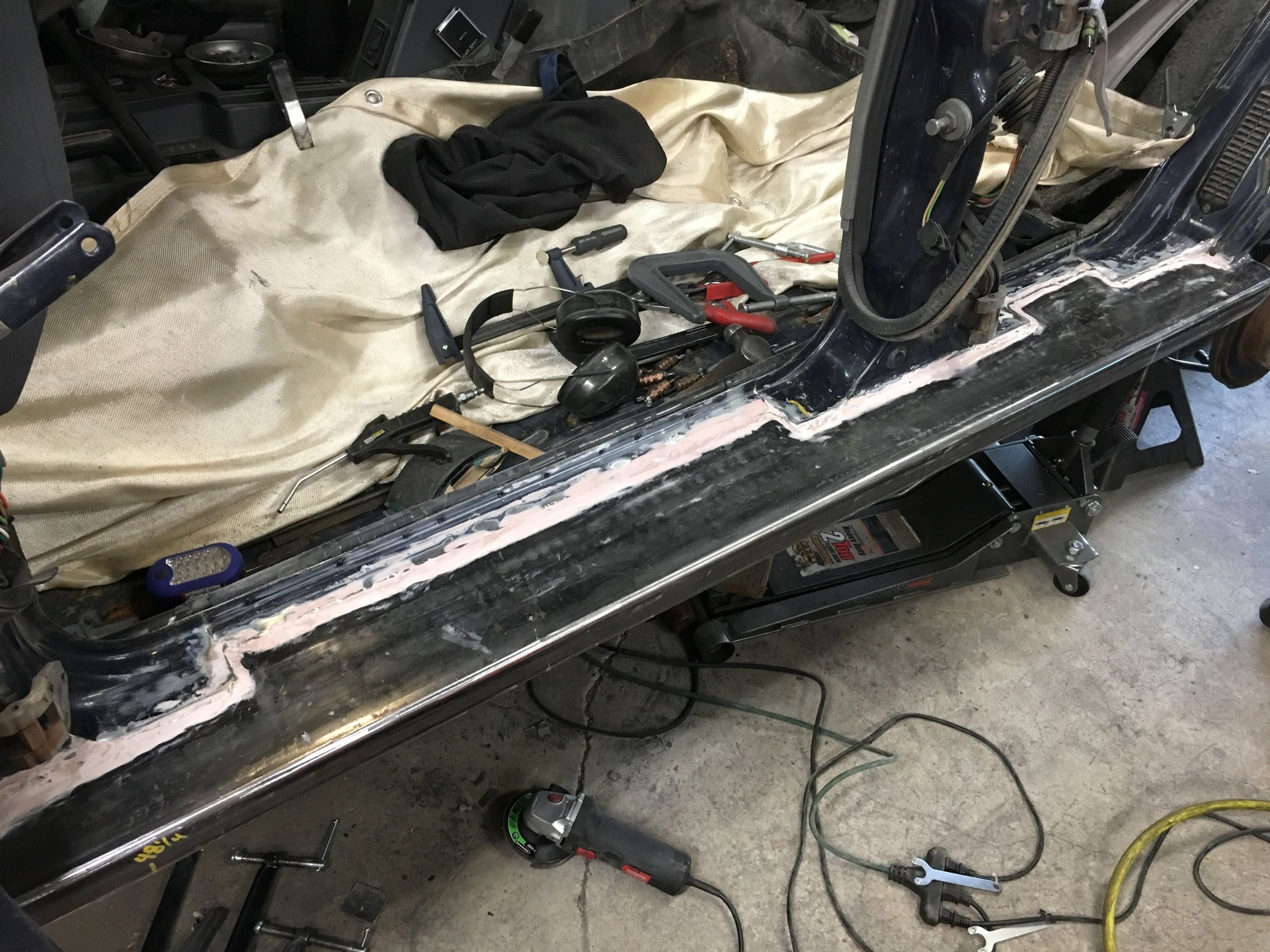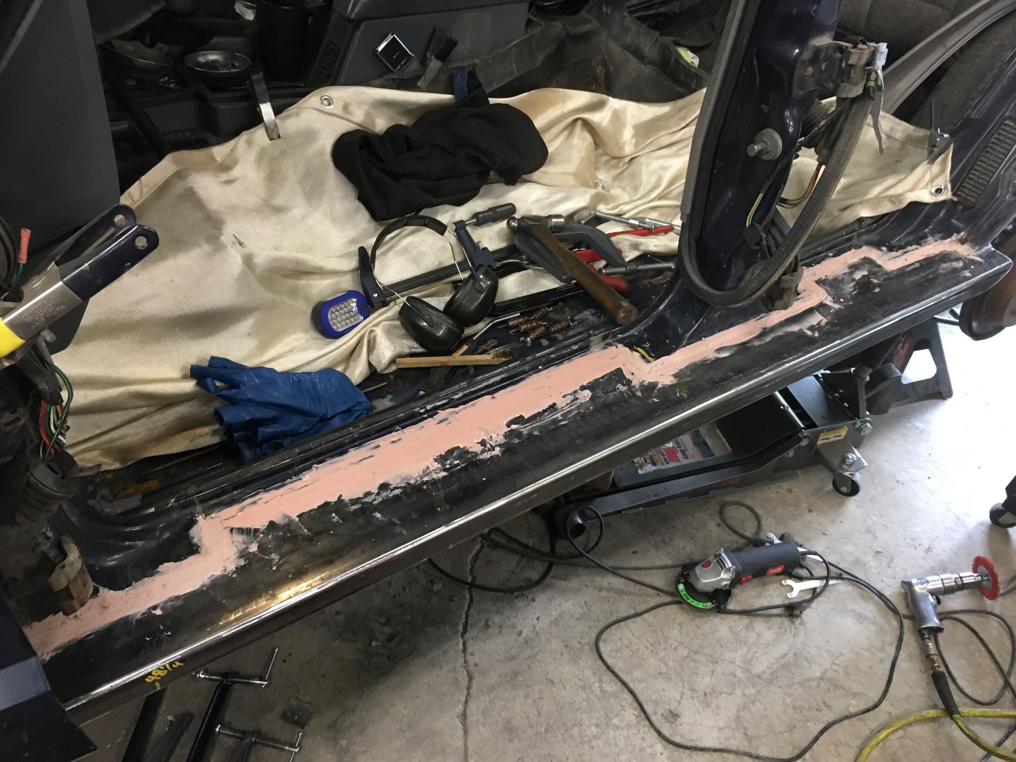 Scraping and cleaning the seam sealer is a pain! I found a trick to save a little time. Clean it off above this seam area. Then make your connecting cut. The piece of the seam thats bent out will the be only held on with one spot weld. Pry that piece off and I just leave primer to clean off! Cleans up a bit easier 👍