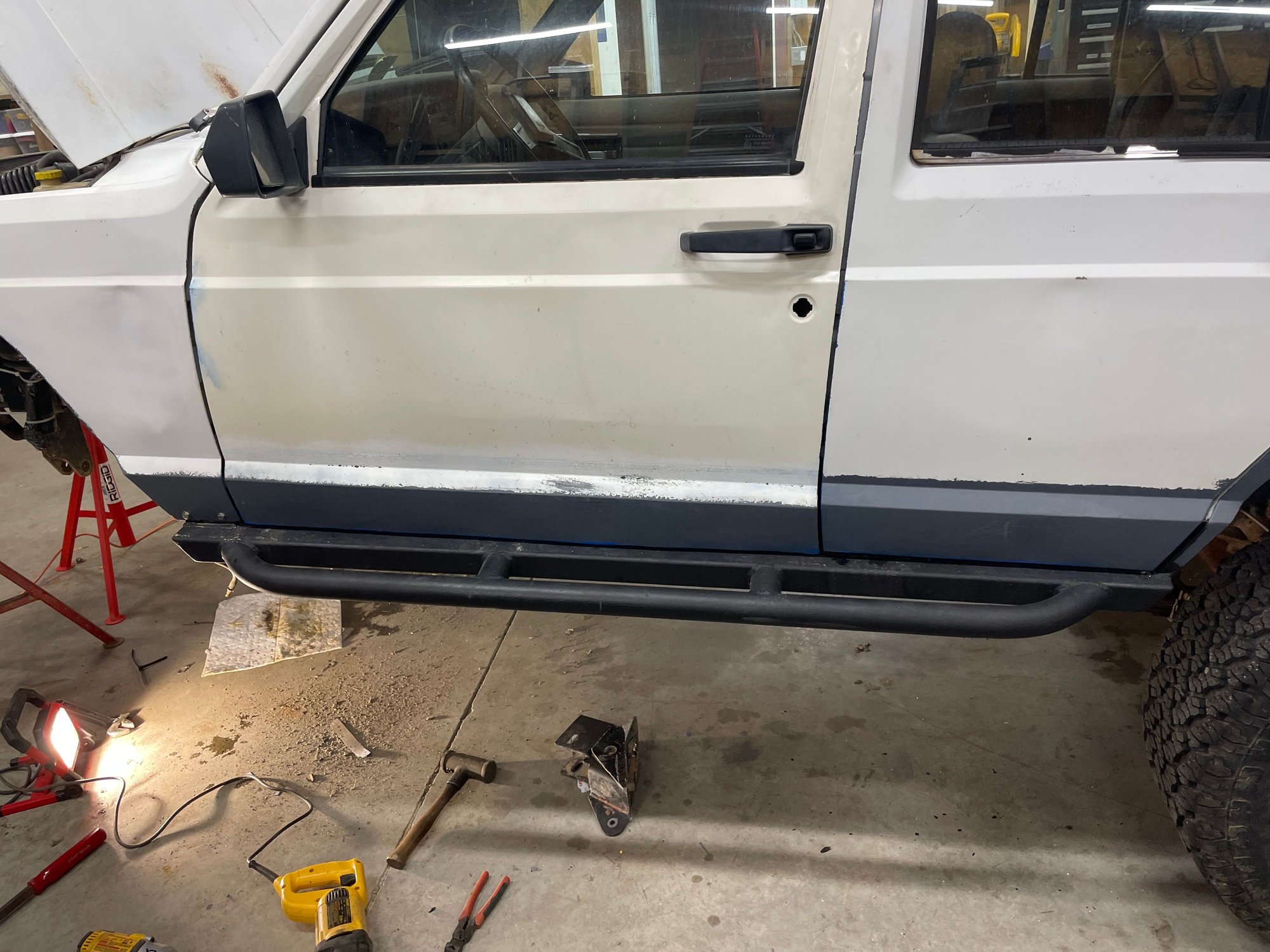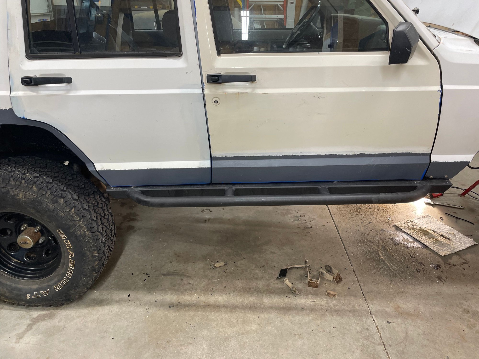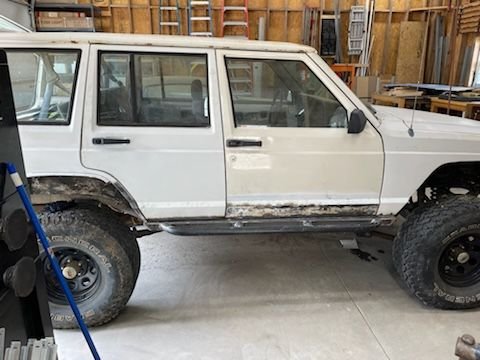 I started this thread at the request of XJlimitedx99, so am starting in the middle. I have the passenger doors cut, welded, and ground smooth. The driver's doors are cut and fit. Both rockers are made up. The passenger rocker panel is cut out and in process of fitting up the 2x6 rocker. I modified the hinges on all four doors to easily lift off. I have manual locks and windows with no speakers in the doors - no wires to disconnect. Makes it very easy to pull the doors for modification and working on the body, highly recommend anyone doing these rockers make that mod to the door hinges too. Let me know if anyone wants pictures of anything specific. I'll post up as I make more progress.