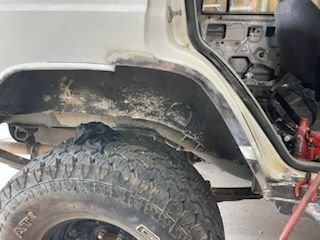 I stopped the rear quarter modification where I did because I plan to plate the rear quarters in 1/8" and stretch the rear wheel openings. I'll do that this winter, want to get this thing back out on the trail.