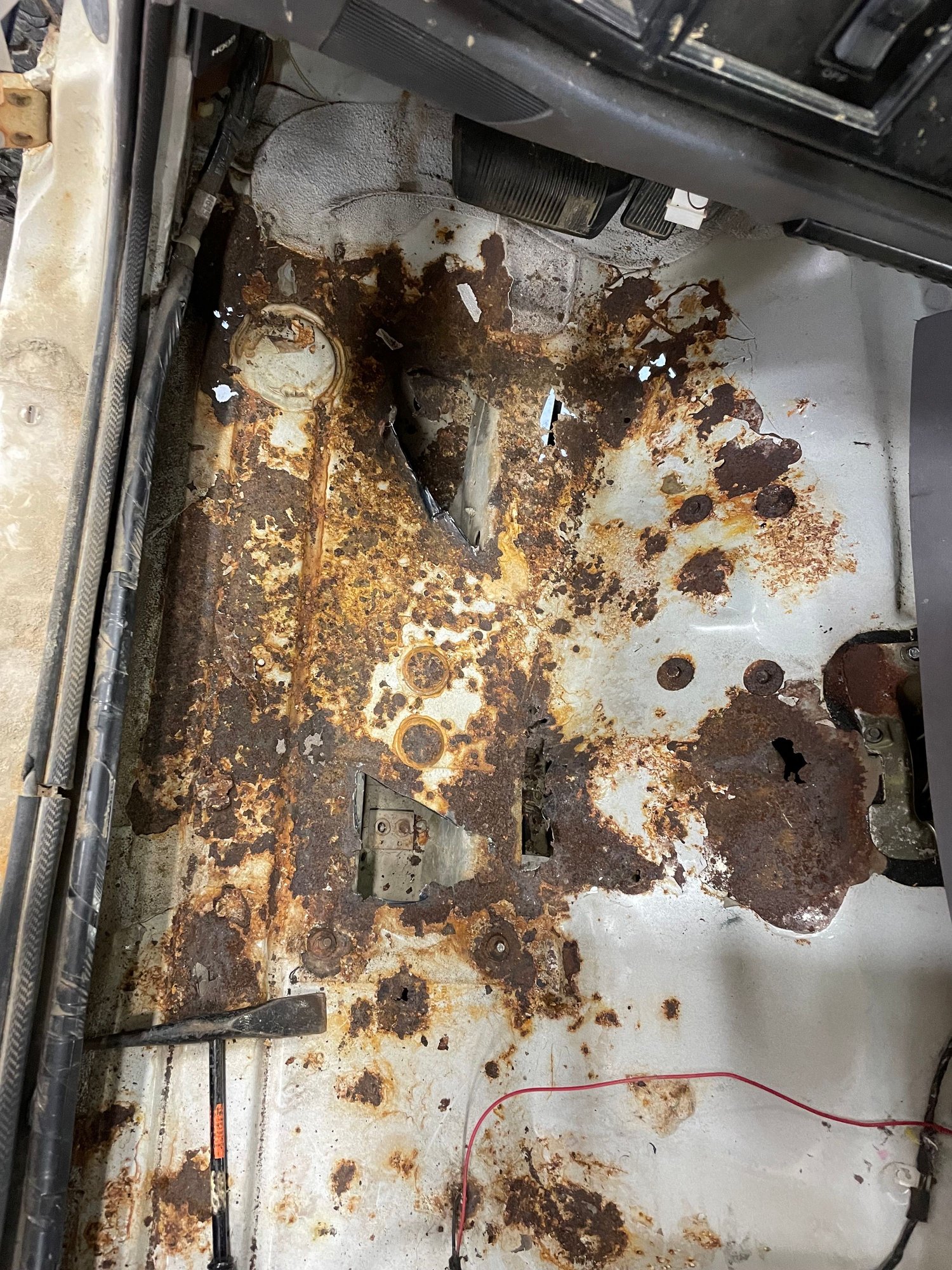 Got some more done this afternoon. Rough cut the driver's rocker out and pulled the carpet. Looks like I'll be putting in a driver's side floor pan and a couple patches.