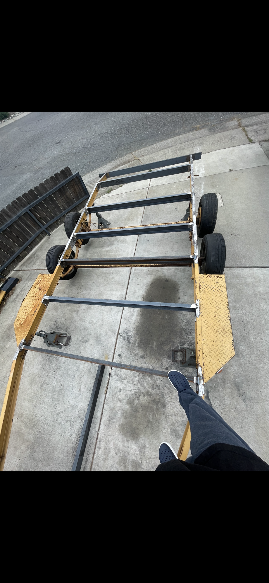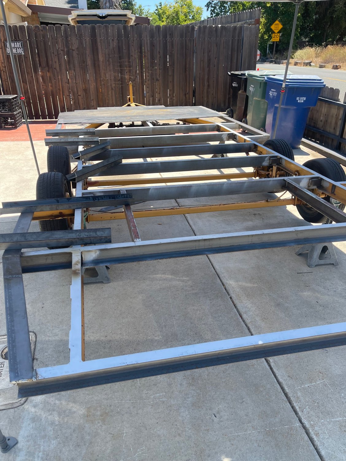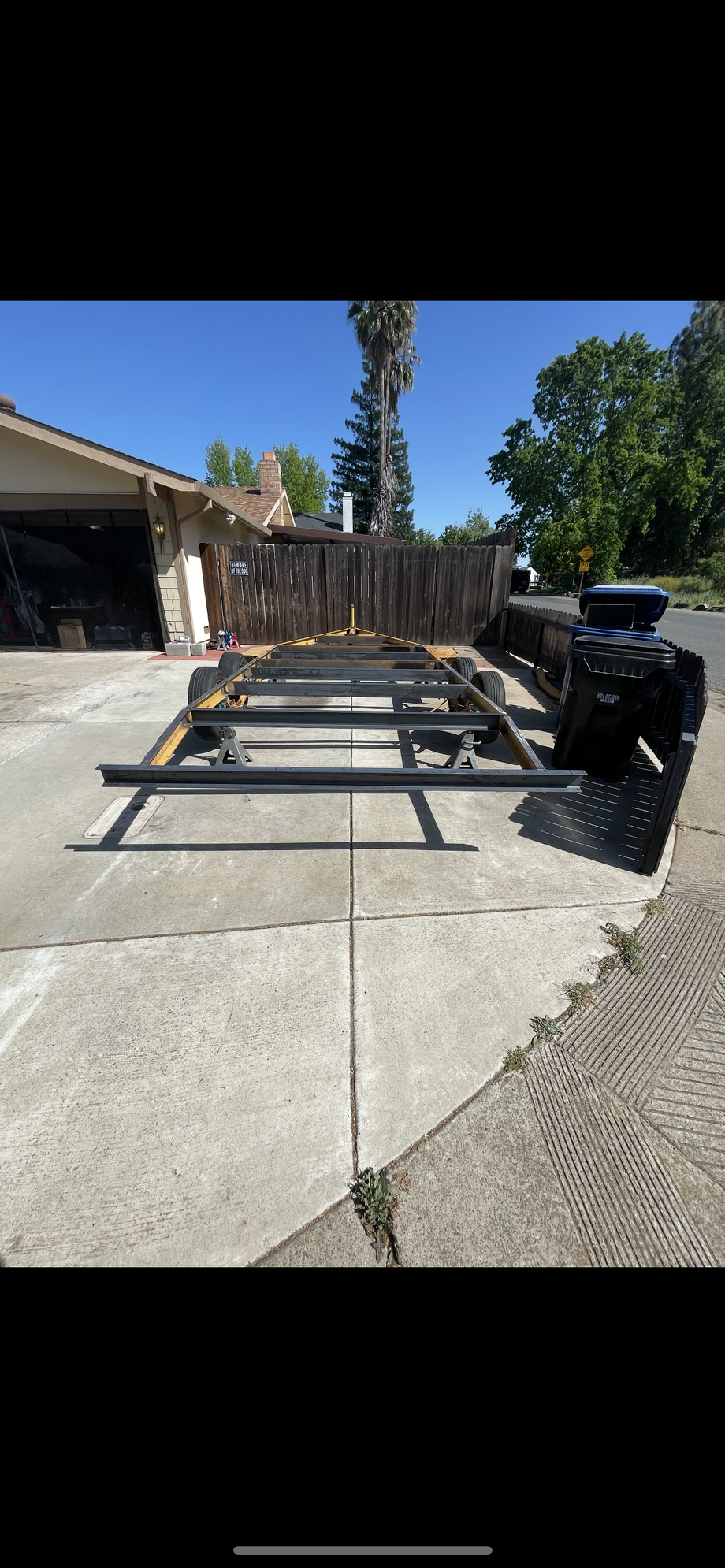 Quick picture thread of a boat trailer I’m converting into a car/utility trailer. I got the trailer for 600 with a title. I jumped the gun on this one forsure. Trailer prices have gone up and at the time there wasn’t a lot of options. If I were to do it again I would’ve just built one from scratch. First I cut the 3 boat crossmembers out and got three sticks of 4” channel to replace them. Spaced them 4’ apart with the idea to eventually have a crossmember every 2’