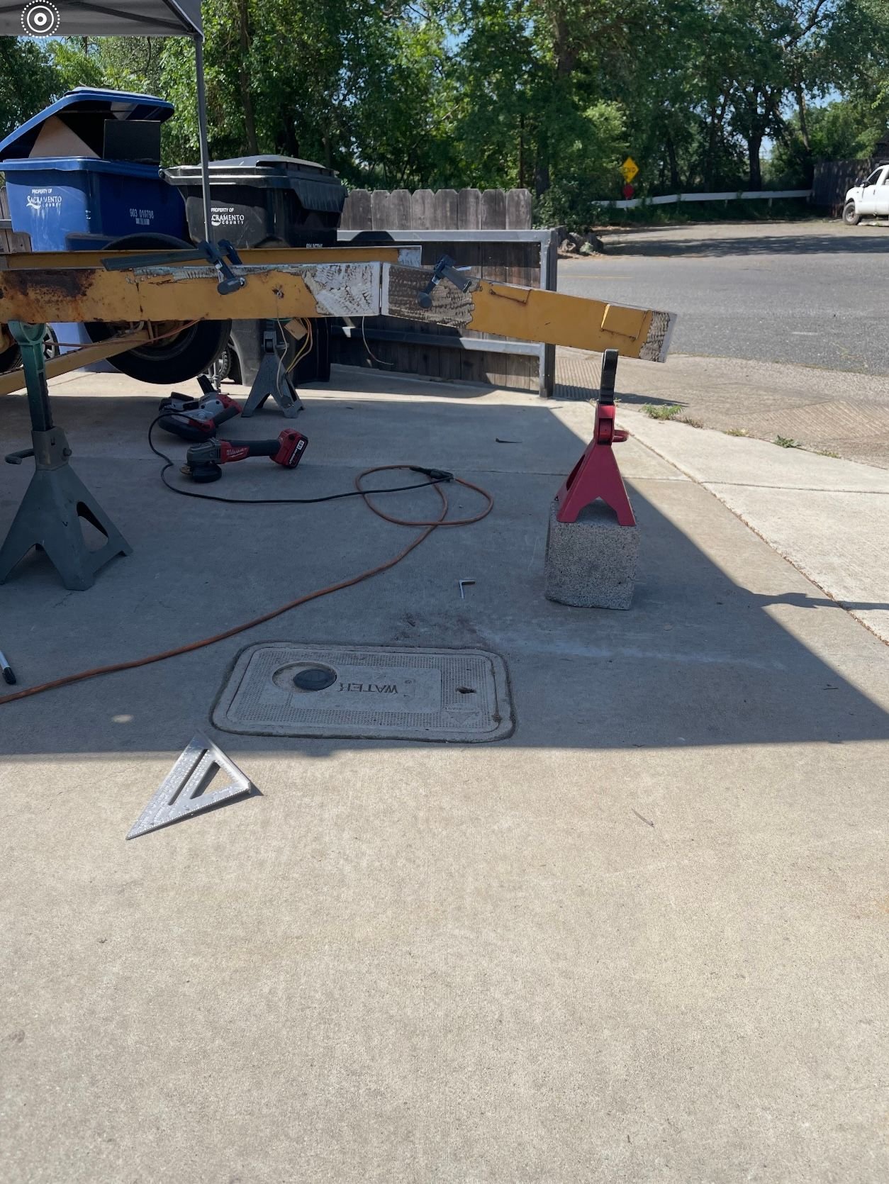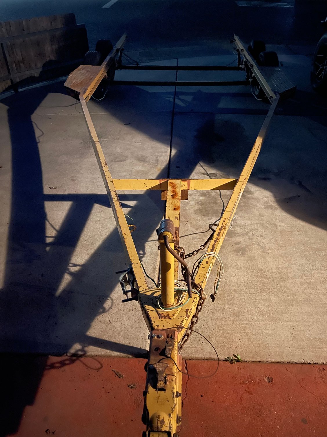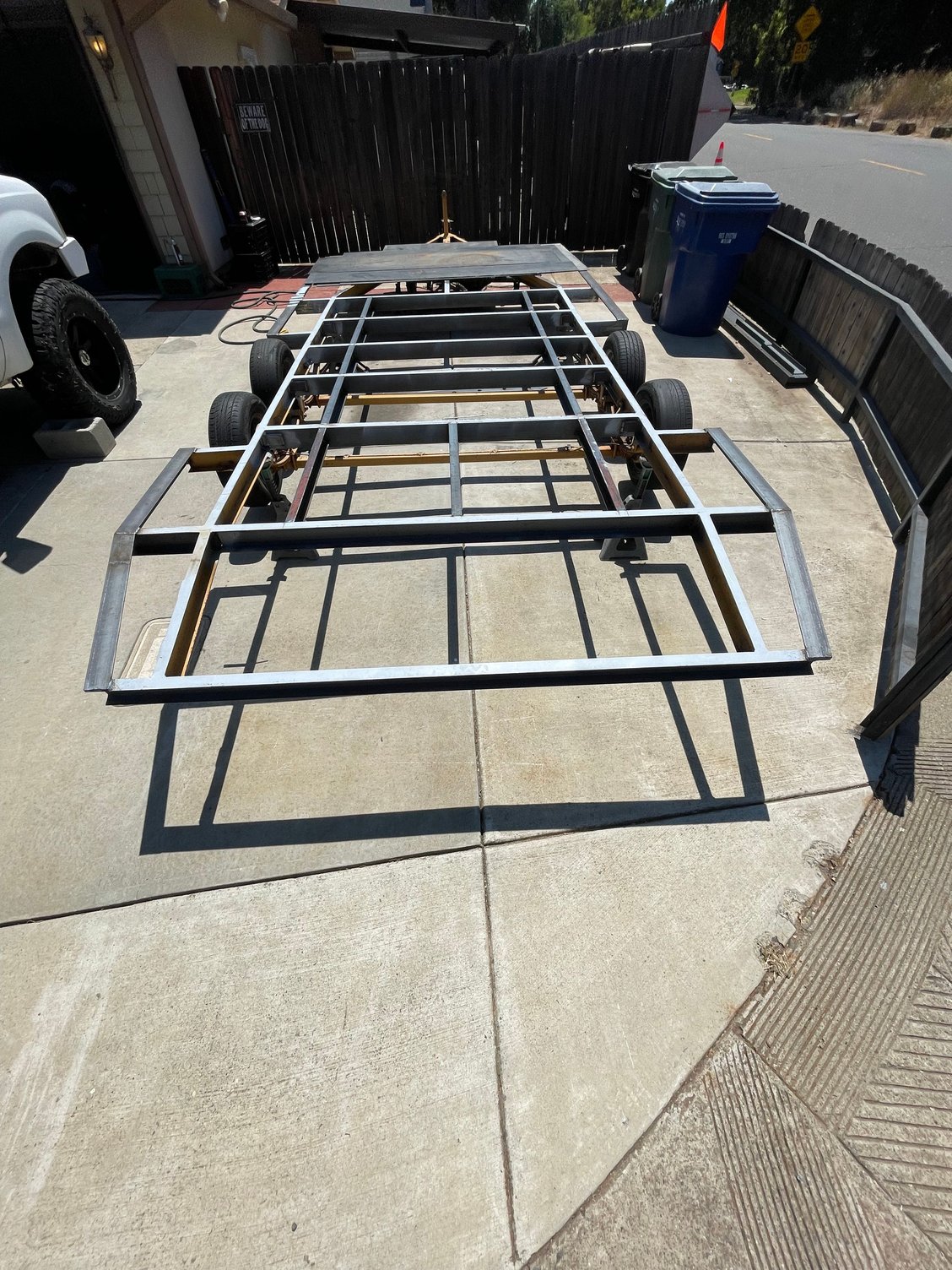 Quick picture thread of a boat trailer I’m converting into a car/utility trailer. I got the trailer for 600 with a title. I jumped the gun on this one forsure. Trailer prices have gone up and at the time there wasn’t a lot of options. If I were to do it again I would’ve just built one from scratch. First I cut the 3 boat crossmembers out and got three sticks of 4” channel to replace them. Spaced them 4’ apart with the idea to eventually have a crossmember every 2’
