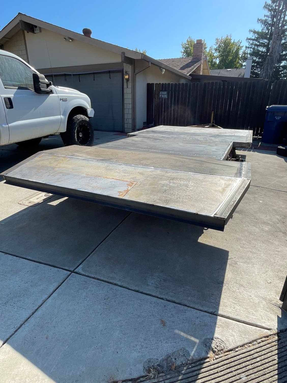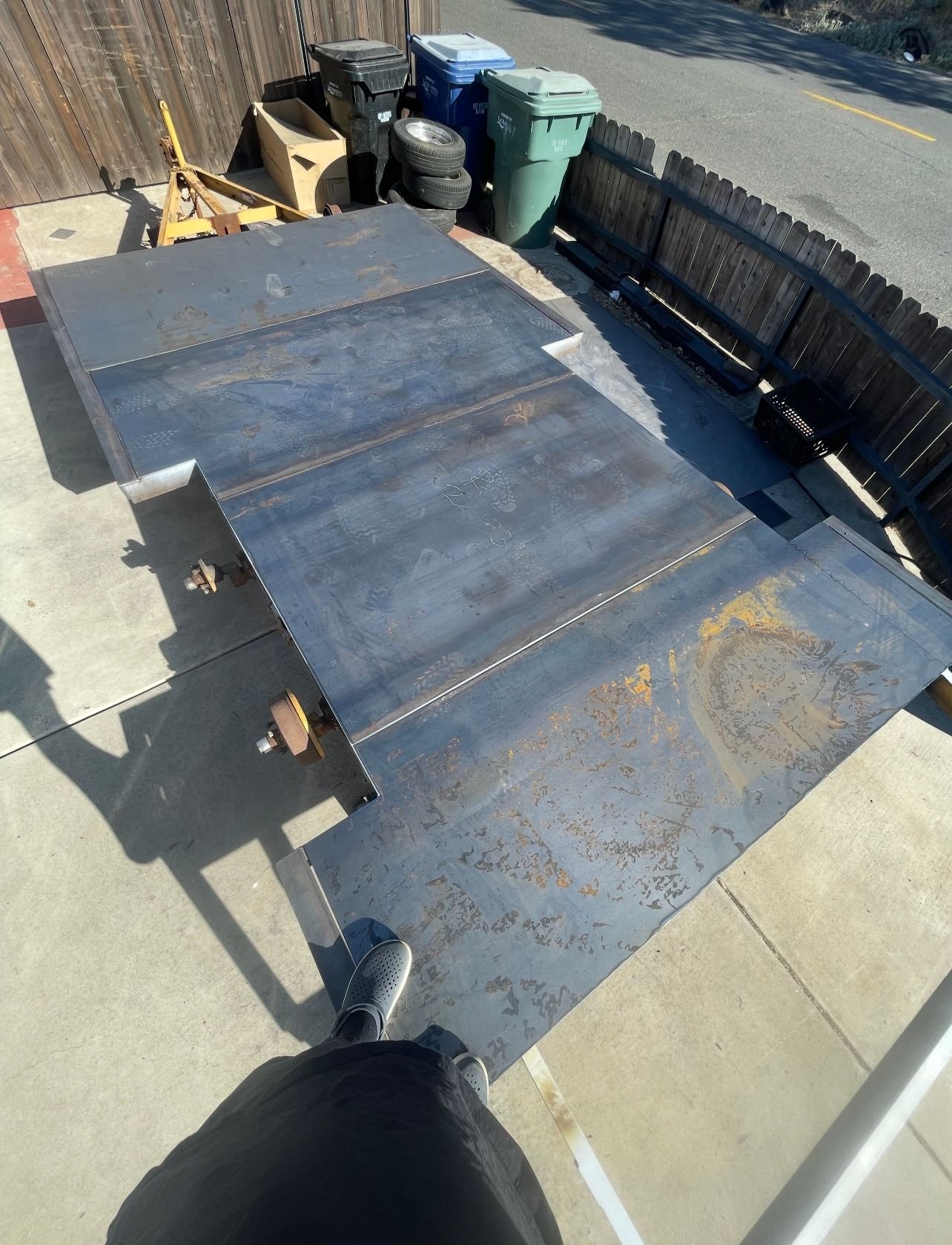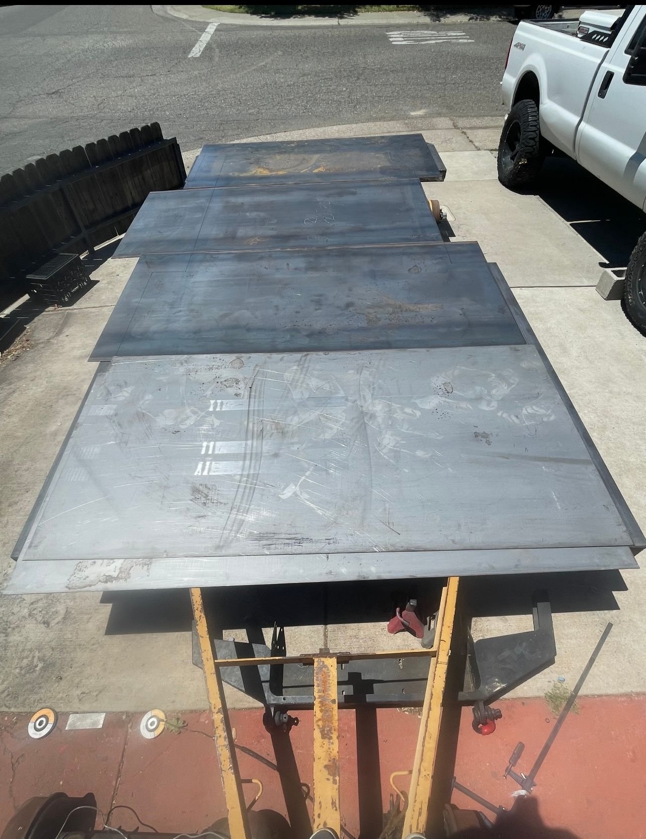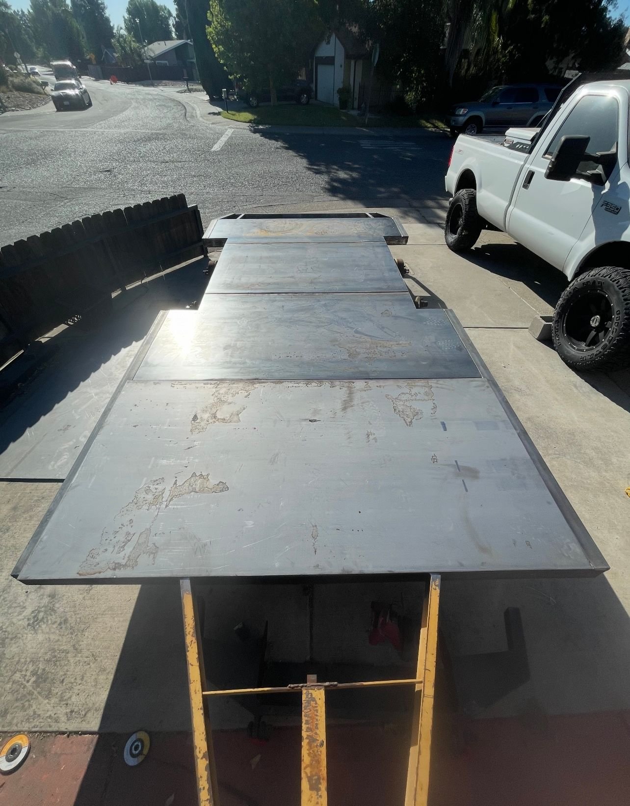 Decking with 1/8” plate so the additional bracing is there to support the deck where the vehicles weight will sit. Just have two more pieces to cut to size and I can weld in the deck. Using a plasma cutter and straight edge to cut out the 1/8” sheet