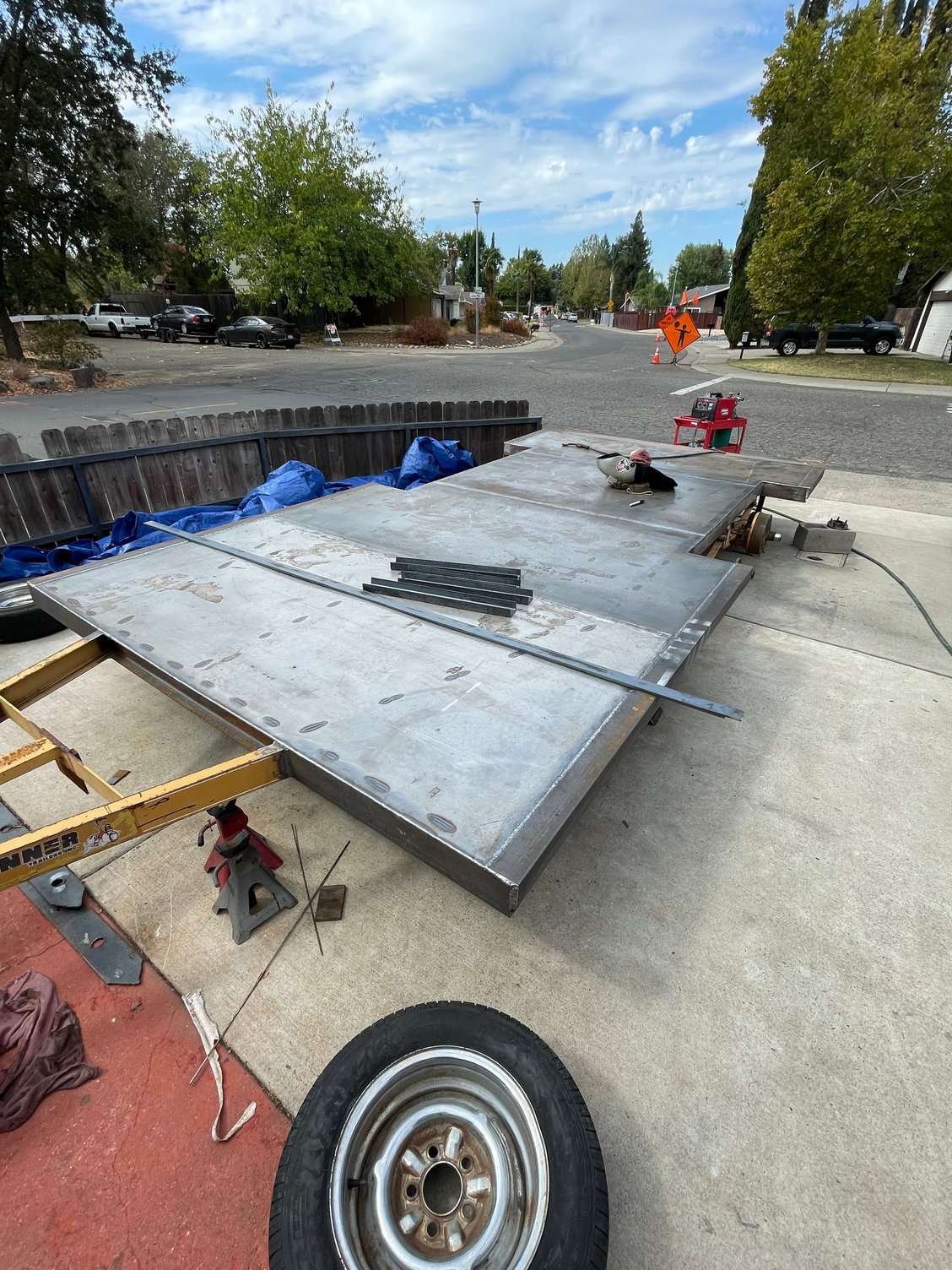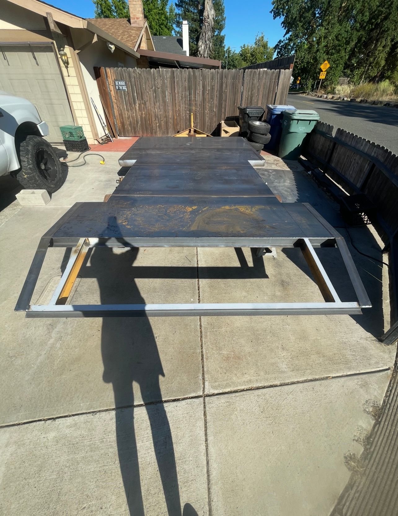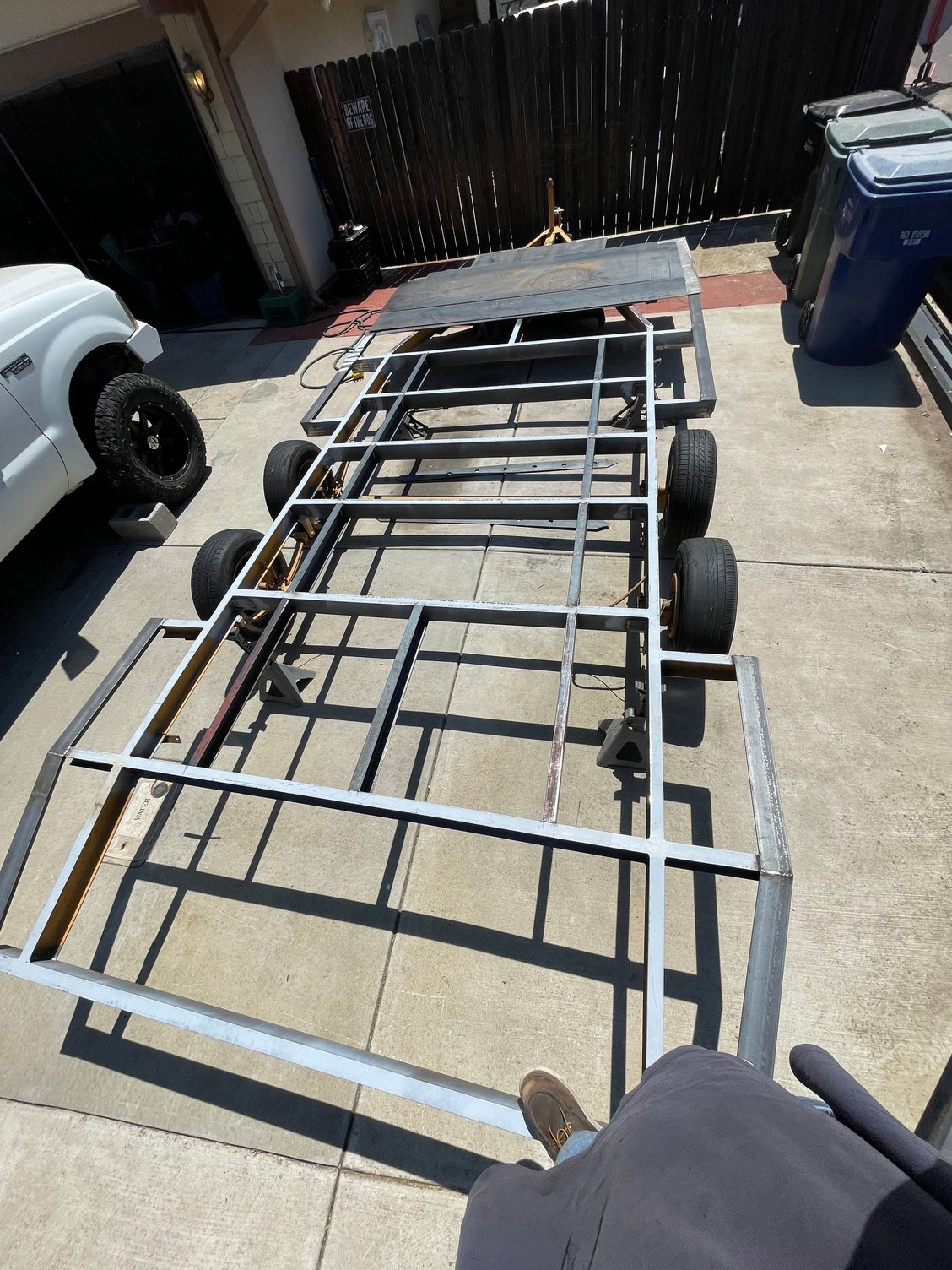 Made some progress on the trailer, 10lbs of welding wire later and this is where I’m at. Rain comes Monday so I’ll finish the last bit of welding and paint it this weekend before it gets covered in rust. Wheel wells will come later. I’m welding in a crossmember down the middle to add some support for the deck.
