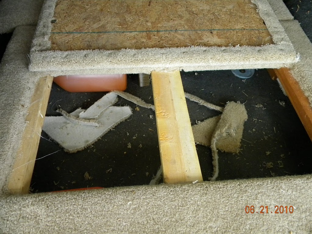 i dont store anything there right now any ways just cause it all shifts around i dont have the carpet in mine anymore so nothing stays still but i did find a const. site around the corner from my house and think i found enough scrap lumber to build the whole thing minus the hinges. gonna go by there in the morning and talk to someone about digging through the pile