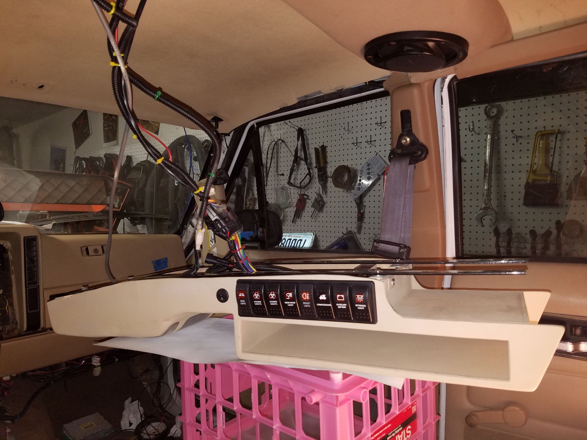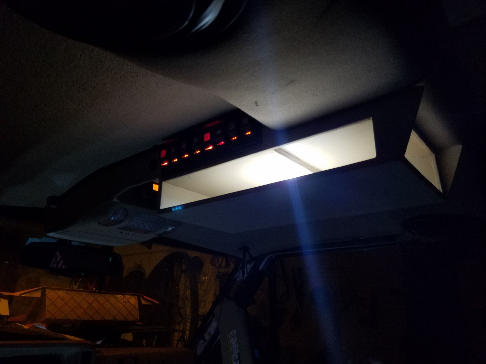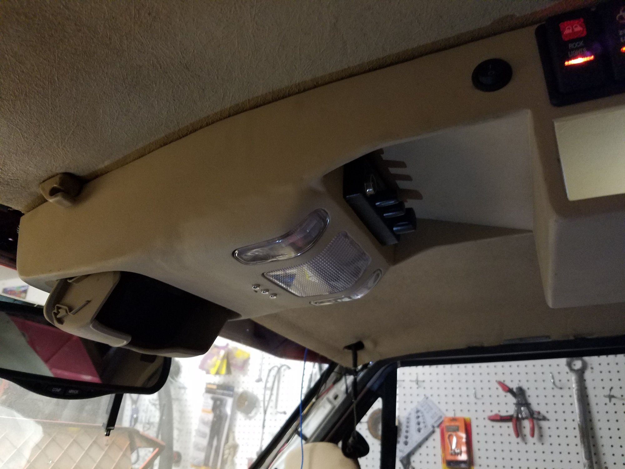 Thanks :-). I attached a crossbar that mints the front to the visor clips and ran long steel pieces back that slide over the roof support crossbar just behind the stock overhead light.