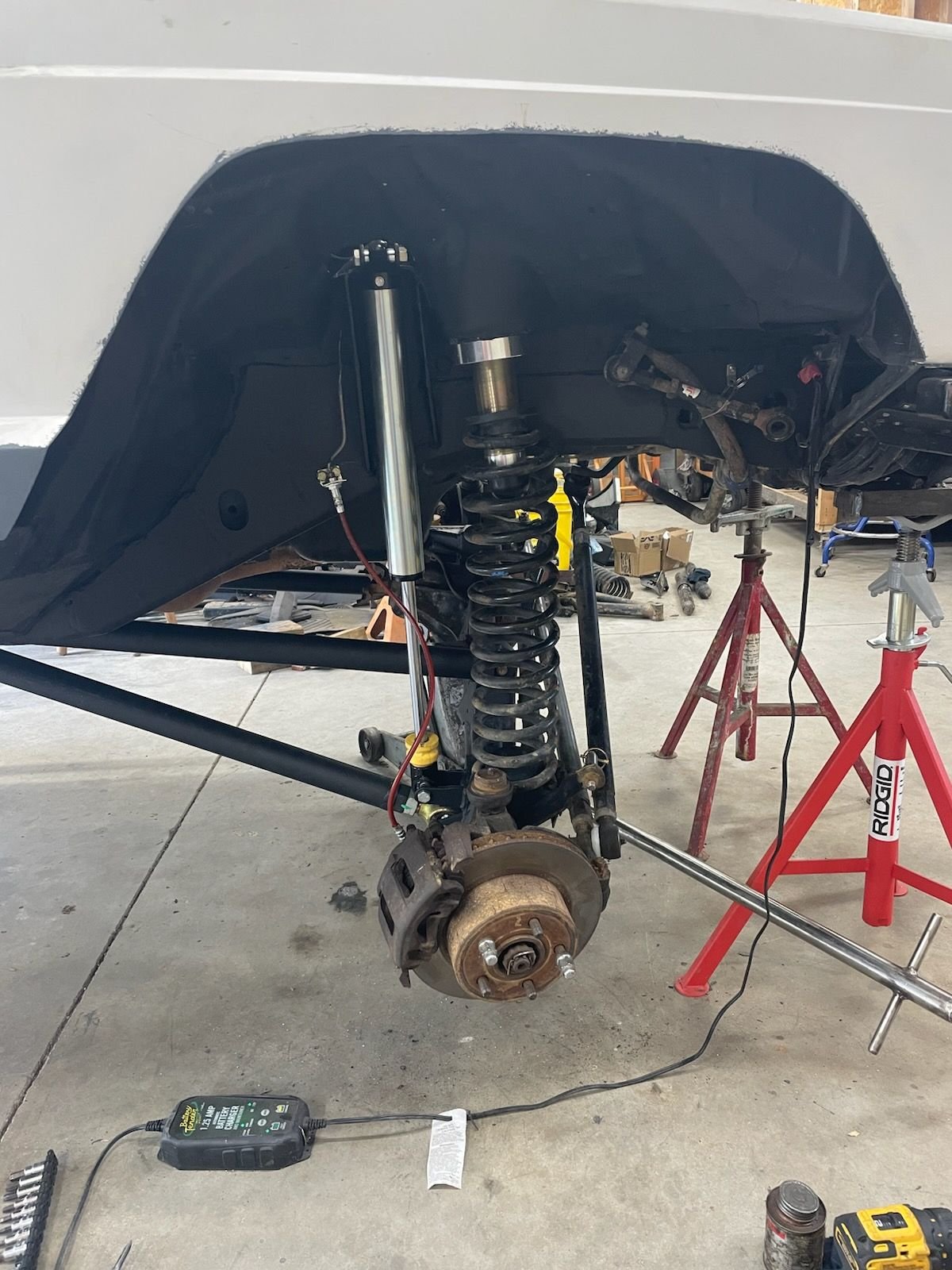 I'm running 12-in coilovers on my front and honestly 12 in is plenty of travel for everything I do go faster slow I haven't found that I need more I mean if I could have got 14 inch but at the time they weren't available so I went 12 and was able to get this stuff sooner and yeah I can build around 14 or 12 it really doesn't matter