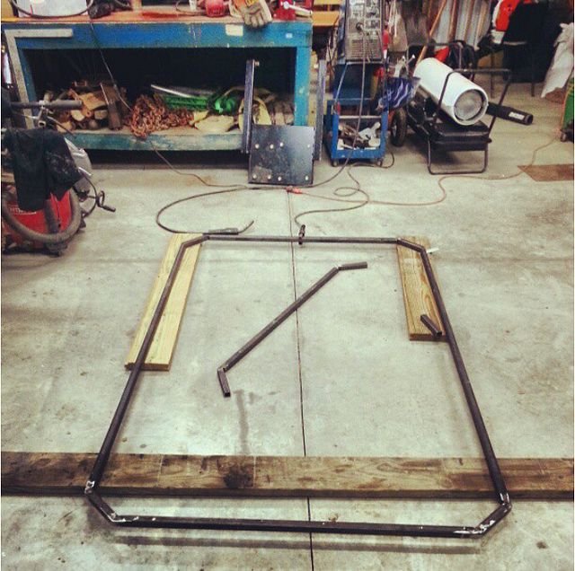 I decided on using 1 1/4 120 wall tube steel. My boss and I are friends with many of the local business owners and he hooked me up with a guy that bent my 90's while we unloaded a bit of firewood from his pickup. I thought that was a pretty good trade! I was so excited to get started on this new rack that I forgot to take more pics... so hopefully the ones I do have will make due.