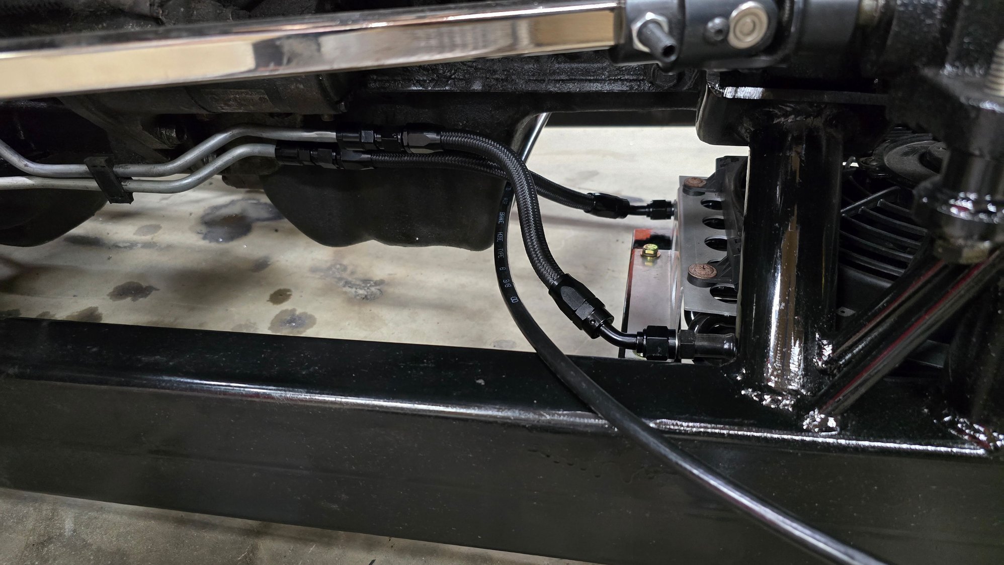 Made a little more progress since my last post. Still moving slower then I would like but progress is progress lol mounted the trans cooler and made lines for it, made the new manifold for the A/C compressor to use it as my air compressor for the air ride, got the exhaust made, and a handful of other small things all on the front end trying to get it all completed.