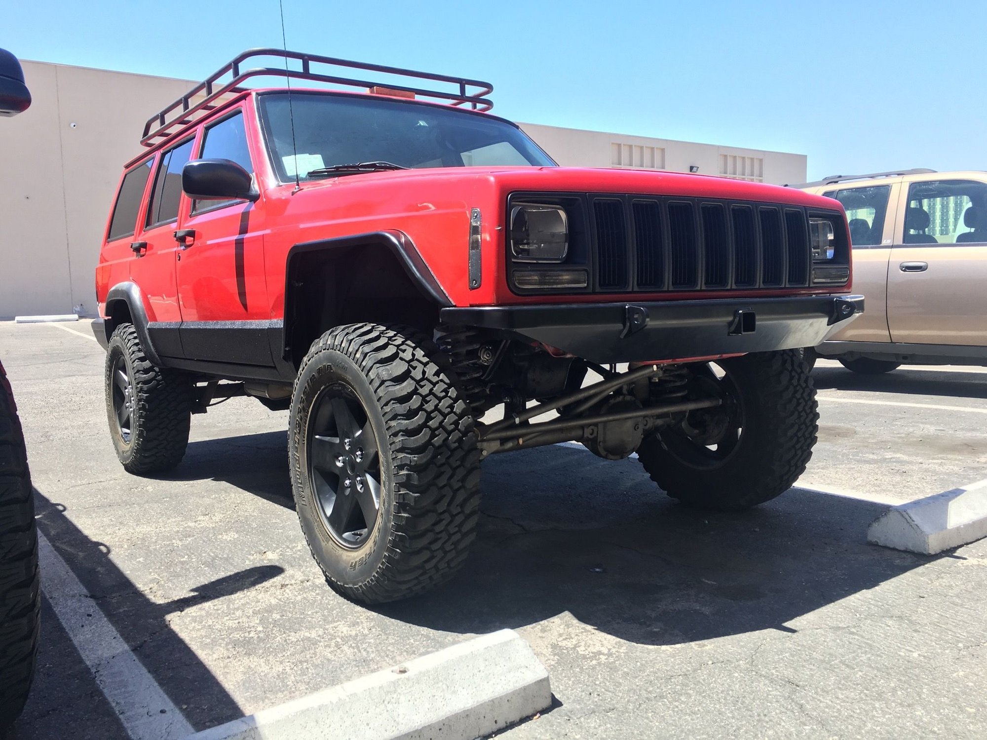 I knew I wanted, and kind of needed, new fender flares. The old stock flares, although I think they looked just fine, rubbed too much for my likes and I even managed to rip them off because of too much rubbing. I looked around everywhere and I hated every option out there. The Bushwhackers and Napier where too big for my liking, plus you could see all the shiny exposed bolts (not really my style). I don't like the look of tube fenders so that option was out for me, also the price was just too much for a set. I was about to just cut the things when I saw a post over on Pirate 4x4. The guy took some old trailer fender flares and started modifying them to work on a Cherokee.