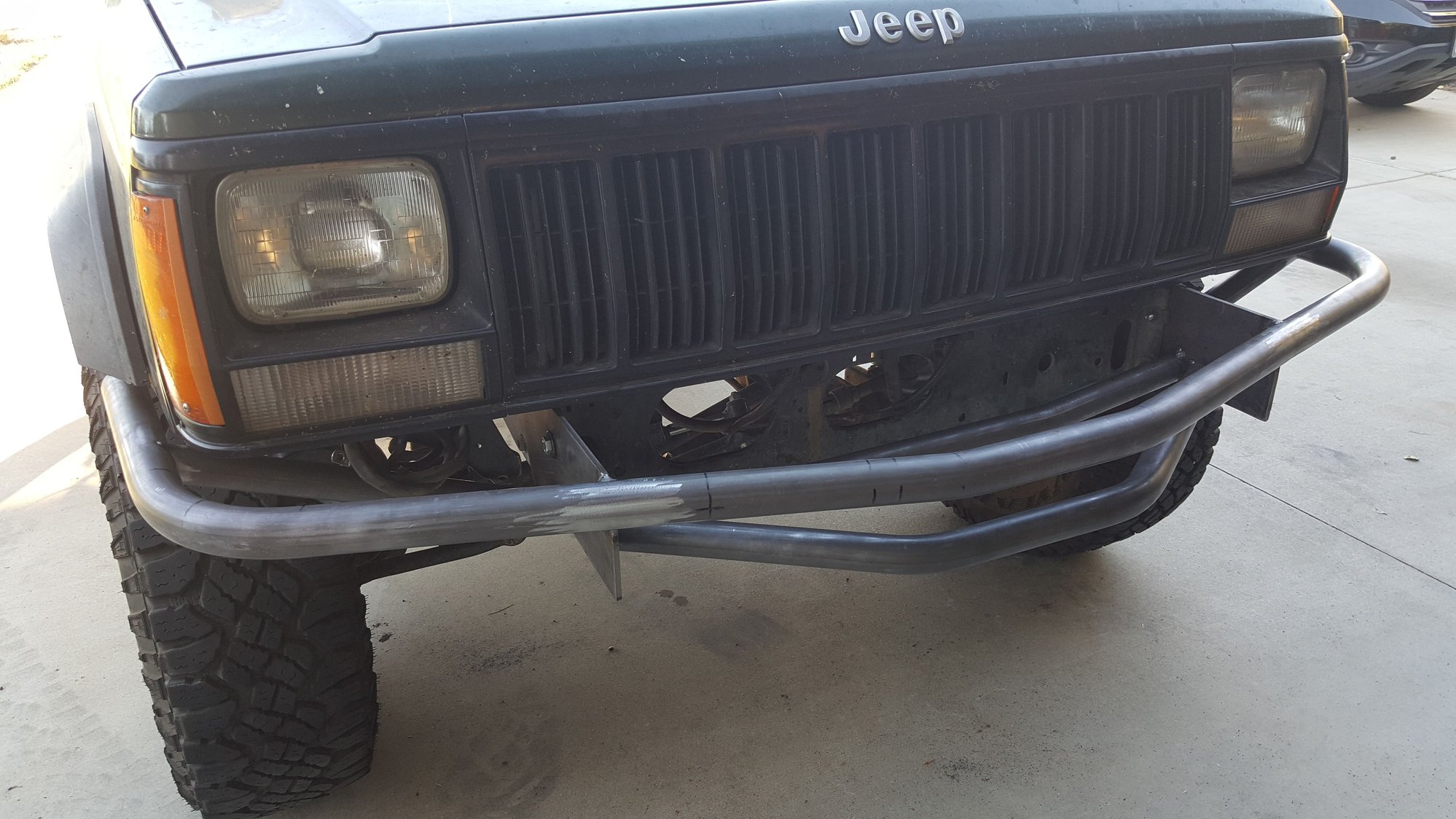 If you are doing tube, I would cut out the front crossmember and tuck the winch in under the grill. With the tube bumper you will have easy access to the winch. Would help with approach angle and all that. Wouldn't be a lot of work to use what you have, just push the top bar back.