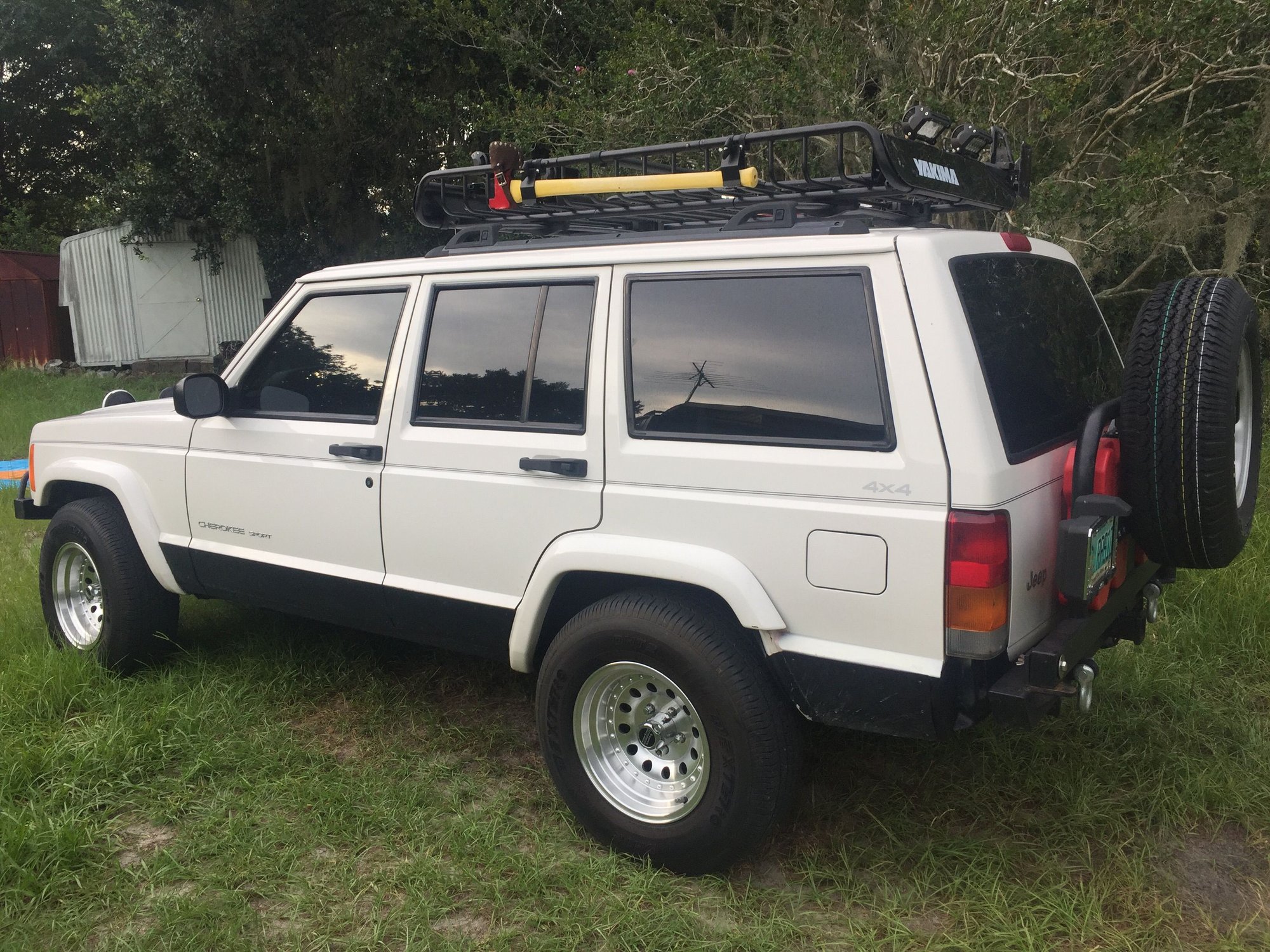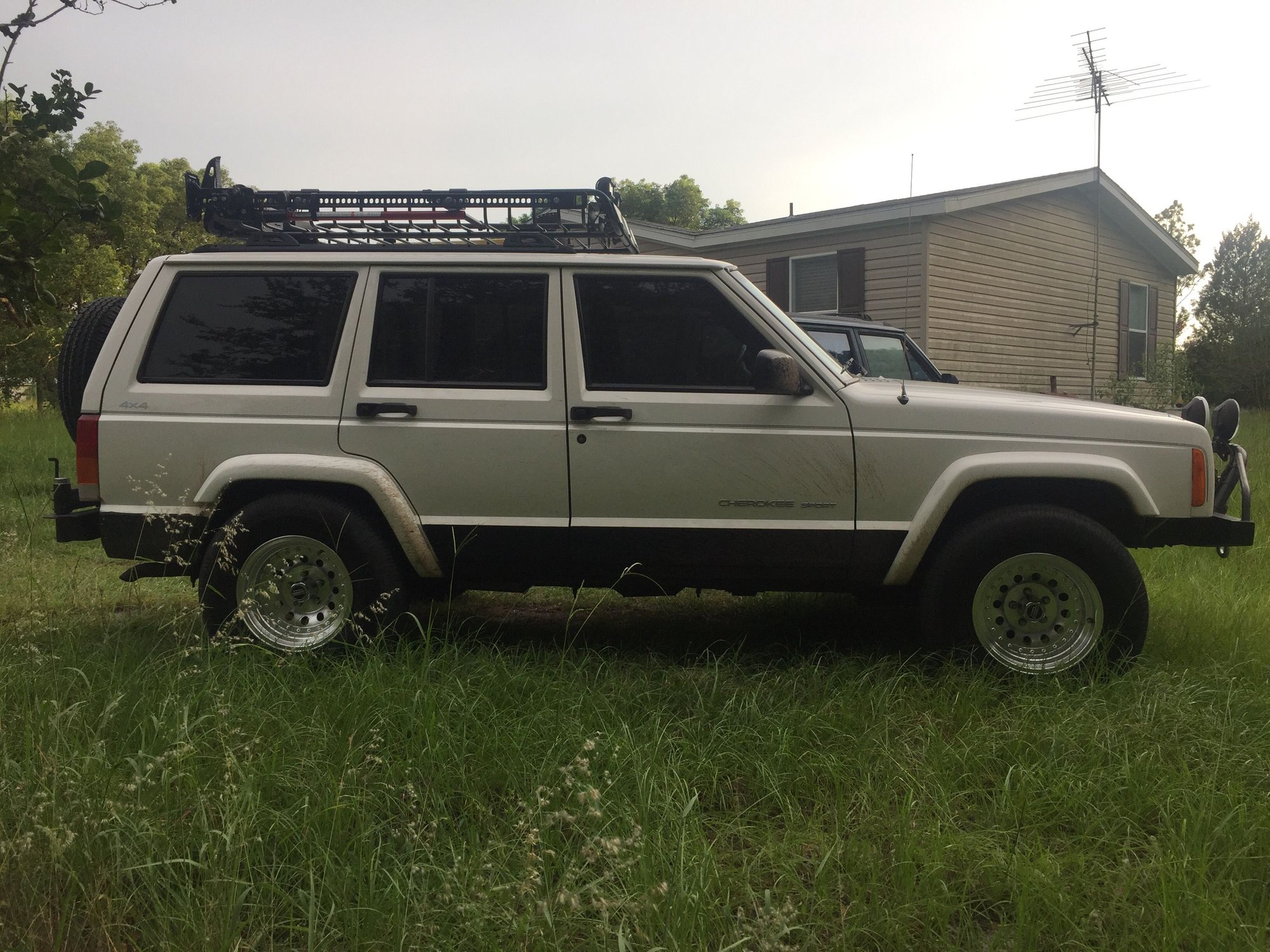 Been looking every single day for the last few months and I finally found the one. Picked it up earlier today and couldn't be happier. Very glad I was patient with it. Found a 1999 Cherokee Sport 4x4. 171k miles. Brought my mechanic friend along and there was nothing wrong with it. Guy I bought it from said he's owned 20 jeeps, built 12. It came with custom built front and rear steel bumpers with tow hooks, a 10k winch, swamp lights, Yakima cargo rack with front/rear lights with a high lift jack and an axe locked to it, a tire rack with the spare and two jerry cans, and the parts to a brand new 4.5 inch rough country lift kit boxed up in the back. New polished American racing wheels. Very clean interior with a new head unit and speakers. Here's a few pics below. It was listed for $5400, but the guy dropped it to $3700. I beat everyone to it.