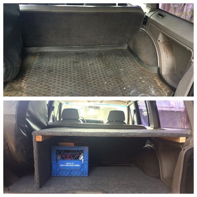New carpet, new right quarter panel, built and carpeted a shelf space so I can keep things in there but semi hidden. Also replaced missing bolts holding down the back seat.