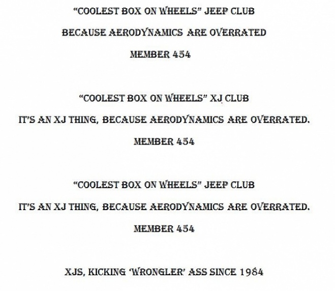 Year: 94 XJ, 03 TJ, 03 WJ, 90 XJ