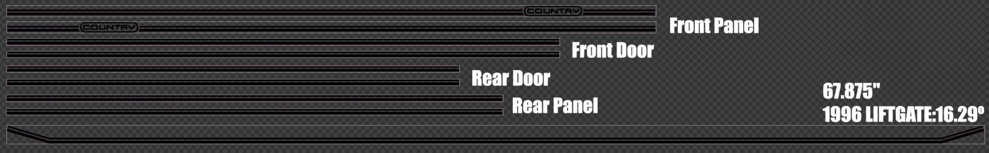 My measurements, or rather my measuring apparatus, was not so accurate. Got another and re-checked all the decal lengths again. I had supposed the rear panels were the same length as the rear doors, but nay.
