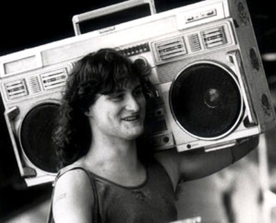 Or you could get one of those car radios that McGruber had in his Miata that you bring with you. A bit smaller than the boombox and just as awesome.