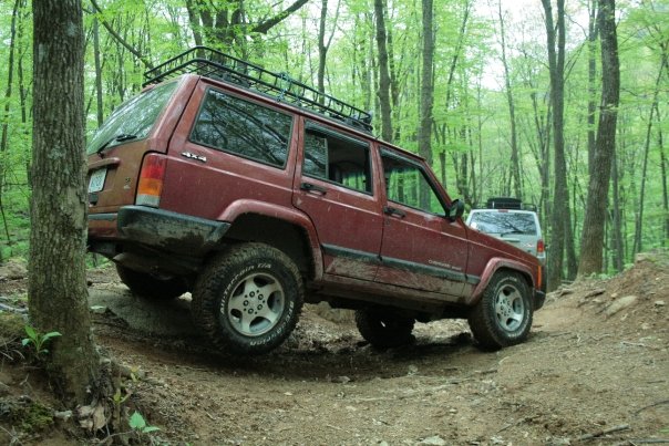 33" tires. 30" off the ground, back tire still firmly planted and more room to drop and tuck. Front shocks maxed out as they are to short.