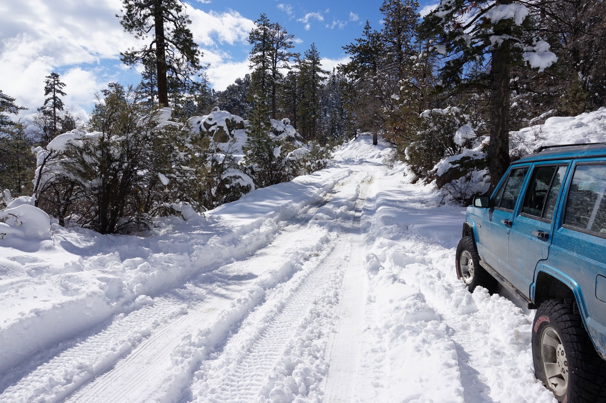 Haven't been here in a while, life keeps me busy. Got a chance to take Jeep to the snow last weekend and had a blast. Jeep was great and finally gets my wife's approval. Big Bear, 2N09 and 3N16 if you're wondering. In the first couple pics you can see the 2wd pickemup truck that I had to yank out of the snow 😤 Be prepared!