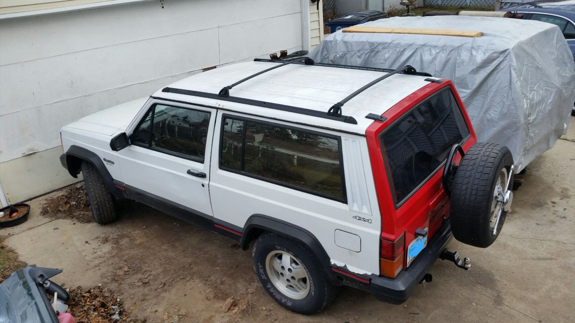 Black Betty is under the car cover. So much of her is in this new truck. Many would have kept her old tailgate but this one has all the hookup for the tire carrier and i gained working wiper/defroster/tinted window