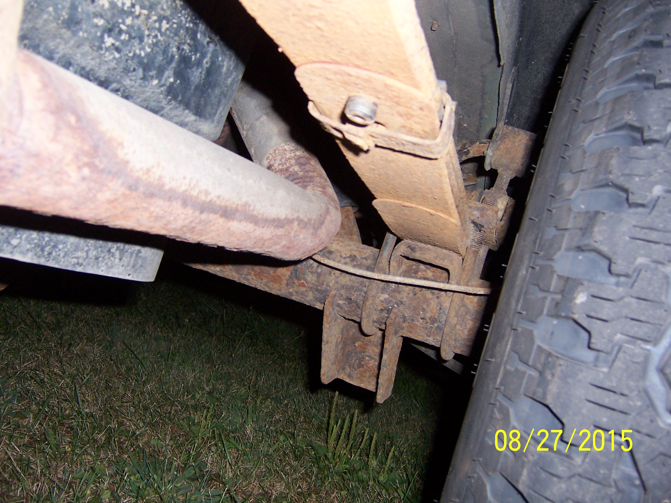 Umm I hate to be that guy but, shackles ain't gonna lift that thing. I'll bet money that once he installs those new shackles, they will make the leafs bow even worse due to the shackles trying to stretch the leafs out. As those leafs bow more, there will be very minor lift gained plus, in those pics, the small helper leaf is already crying, "lord get me the **** outta here." Just saying, just get HD replacements from a place like generalspringkc.com or similar.