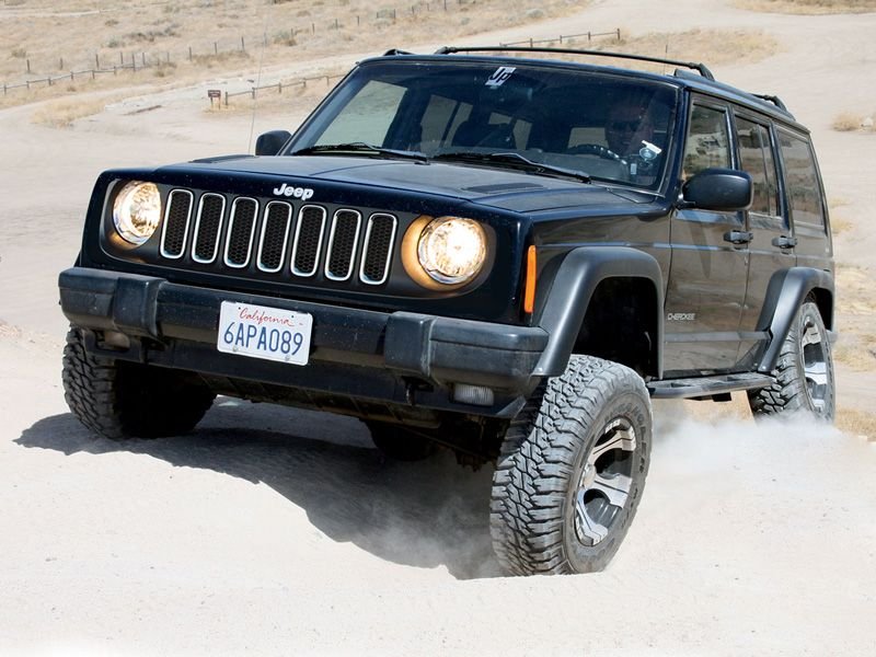 In the real world this would look terrible. The nose of the Renegade is a different shape. It rolls off on the sides around the headlights in a way that would never fit properly on the square front of the XJ. You would have to completely rework the header panel, hood, fenders and bumper to even make it fit. And even then it would look wrong.