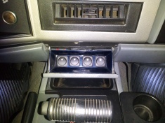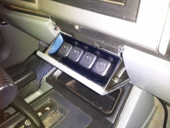 Here's one that i wanted to do for a long time and finally got around to finishing it. Its a switch panel that i made out of 16 gauge sheet metal that slips into the ashtray. Because i had to cut off the piece that keeps it from falling out i made some cables (like a tailgate) to hold it up.