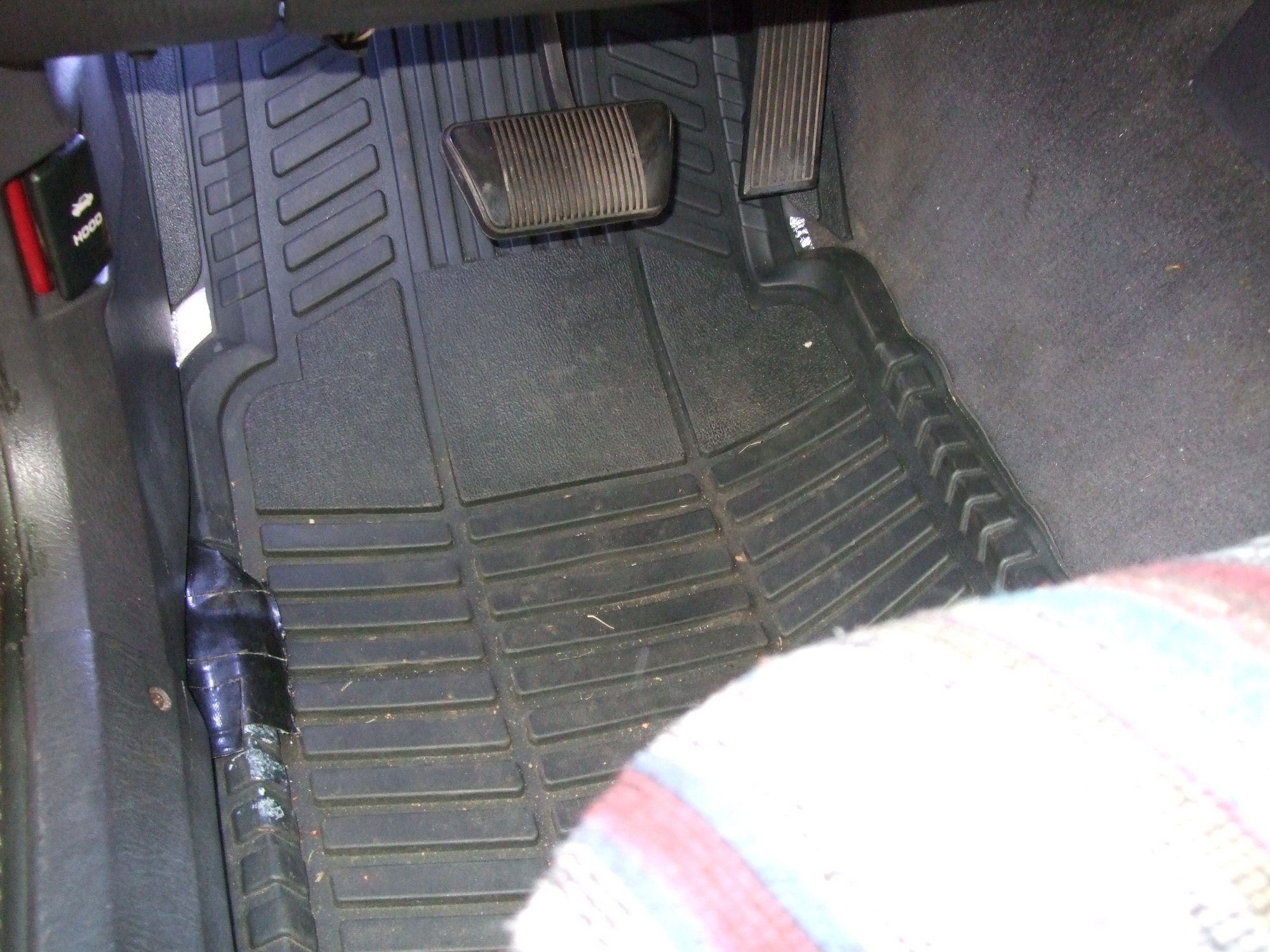 Passenger side. The foil sticking out under the top left corner is foil/bubble/foil insulation. Eventually it will go under the carpet if I find a reason to pull it up again after tracking down the leaks.<br/>