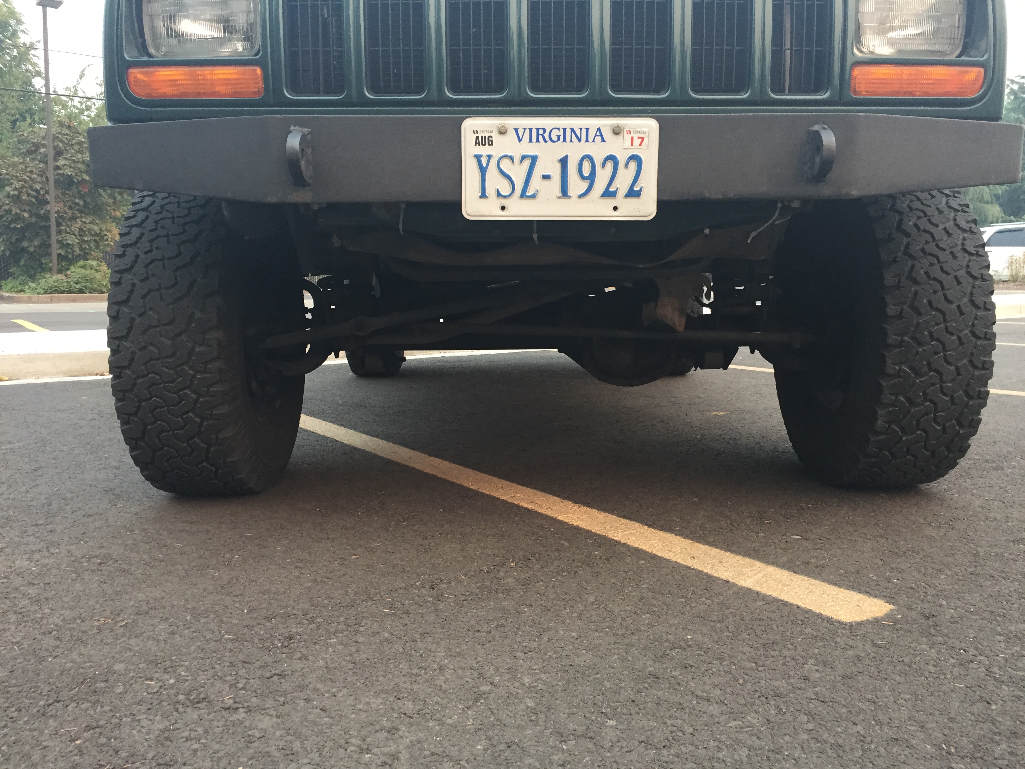 Custom front bumper - mounted to steering box and has recessed receiver behind license plate (I will also include a hi-lift jack and the accessories I have with it, including a tow rope).