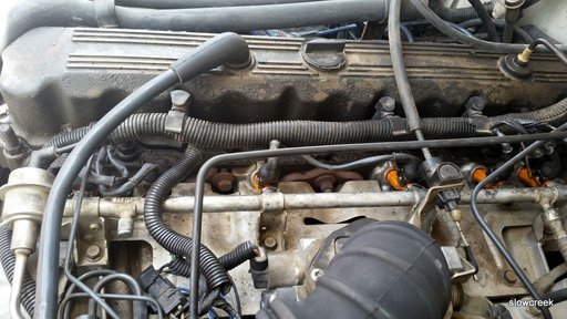 Win I took mine out and cleaned the gunk out of them; connected a battery up to the injectors on the work bench to hear the "click" telling me that they were working