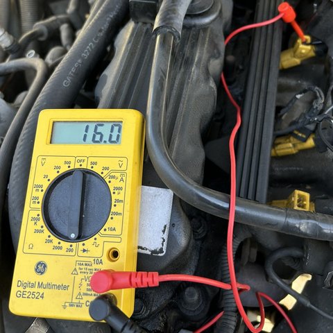 I just bought a 1995 XJ and the previous owner had upgraded the fuel injectors to Bosch 910s (4 hole) a few years ago. One of them flaked out recently, and triggered a check-engine light. I guess it is stuck open, because it still runs without a miss. I'm wondering if I should replace just the one bad injector, or replace all 6. This picture shows one of the good ones being impedance-tested. (The bad one had no continuity at all.) Bosch 710 fuel injector impedance test