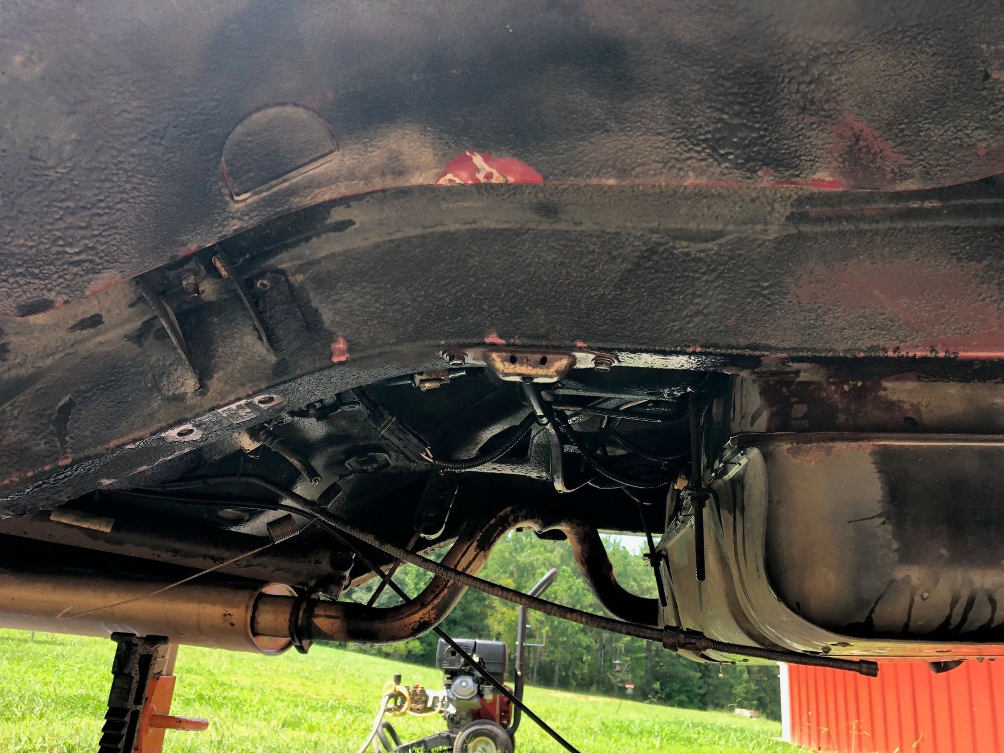 Had a little time this morning, got the axles snatched out, pretty big job doing it solo. I had mentioned before this Jeep has zero rust, well today confirmed that. To be honest I know the history of this Jeep and I know it has basically never been "off roading". Every piece of factory hardware came out. The rear shackle bolts to frame came right out, no problem at all. Even the upper rear shock bolts came right out with no issue. Actually the most difficult hardware to remove was the upper control arm to frame bolts, and they were just tight as a ****... So again, got the axles out, then pressure washed the underside, with a lot of attention to blast off any of the loose factory undercoating. Also removed all the left over pieces of the plastic inner fender wells. I read somewhere that Rock Auto my have new ones cheap so I may get those or just run without them, not sure yet. Next is to decide if I am going to drop the gas tank and clean under there, the Jeep was really so clean I am leaning towards not dropping it. Then use a bedliner type product on the inner fenders and frame. Enough talk, here is a couple pictures;